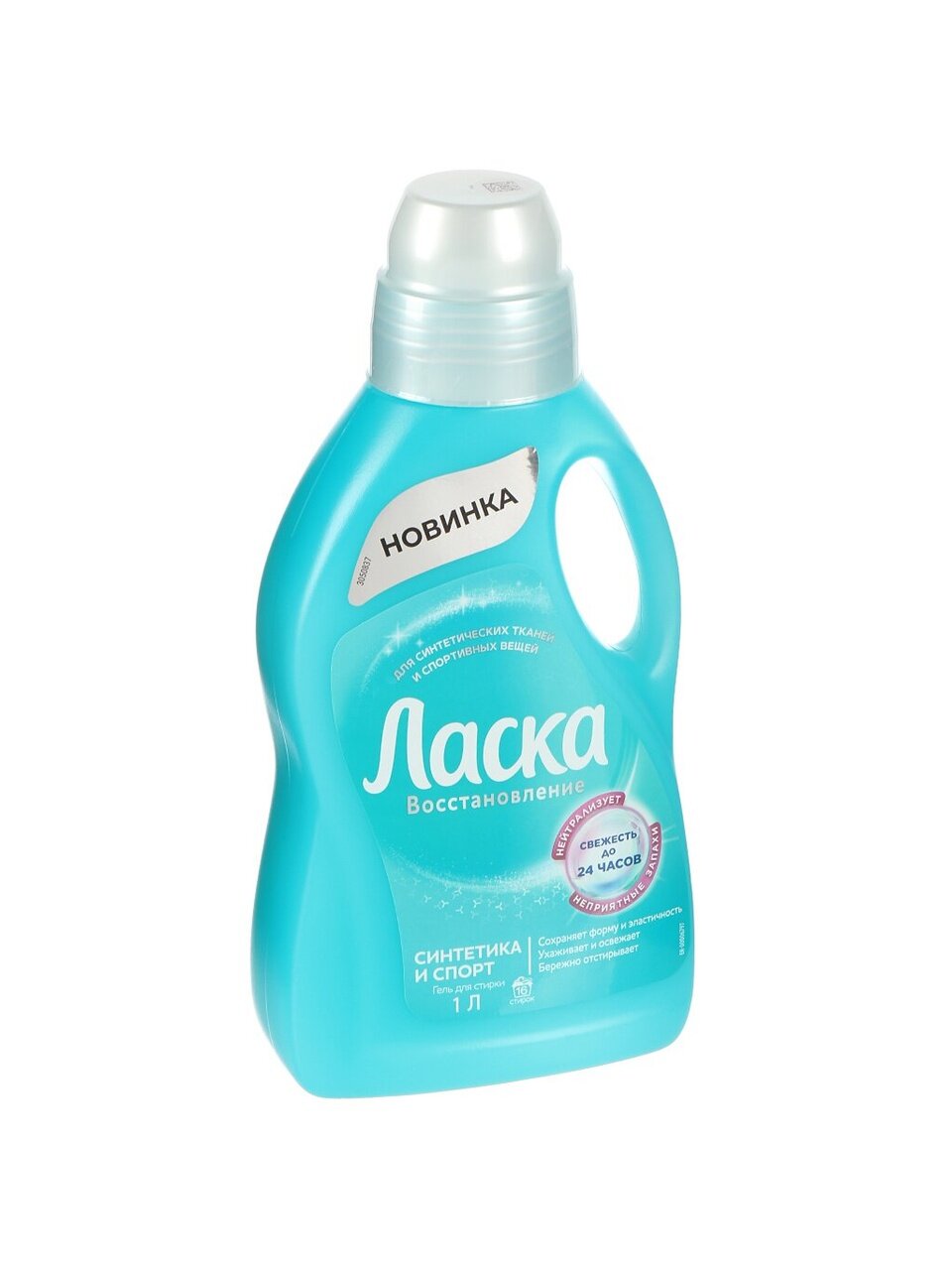 Гель для стирки Ласка 1 л для синтетических тканей — сохраняет свежесть, продлевает срок службы вещей, экономит до 30% расхода воды и электроэнергии.