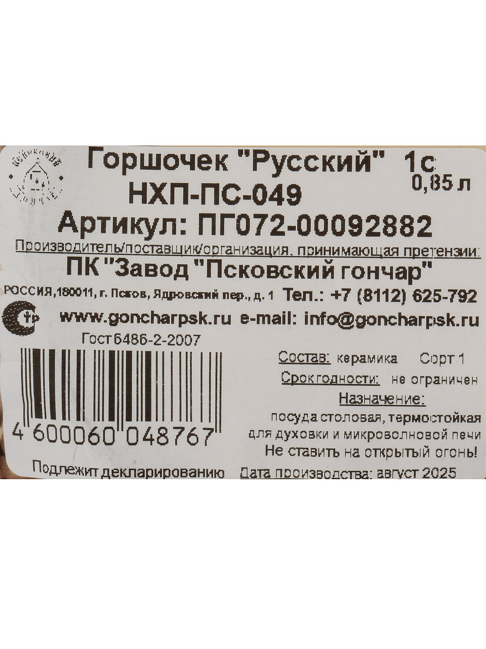 Вы можете приобрести «Горшок для запекания керамика, 0.85 л, Псковский Гончар, Паутинка, НХП-ПС-049, ПГ072-00092882» и другие товары в нашем интернет-магазине в Россоши по низким ценам и с бесплатным самовывозом.
