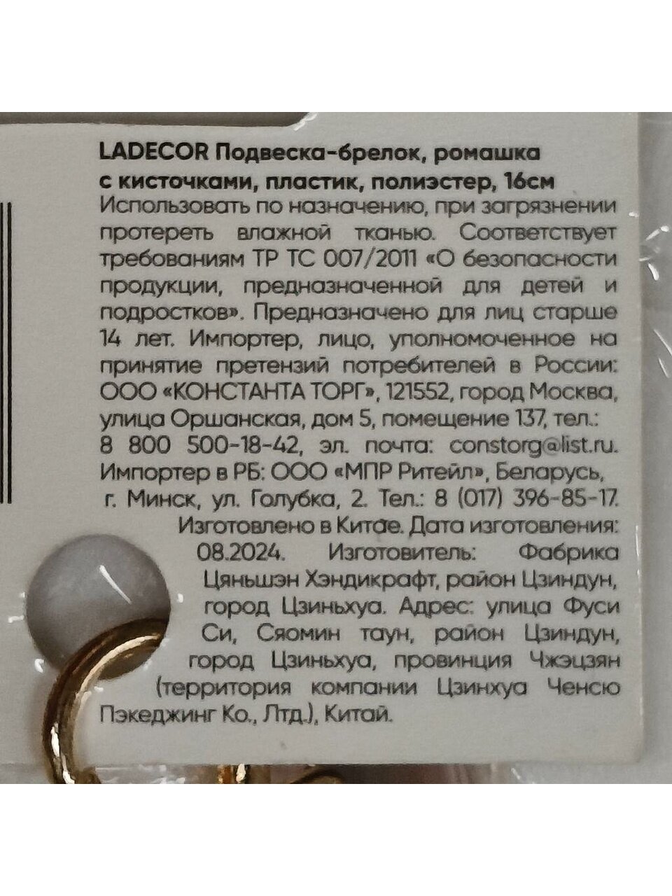 Вы можете приобрести «Брелок Ladecor, Ромашка с кисточками, 16 см, пластик, полиэстер, 509-916, в ассортименте» и другие товары в нашем интернет-магазине в Белгороде по низким ценам и с бесплатным самовывозом.