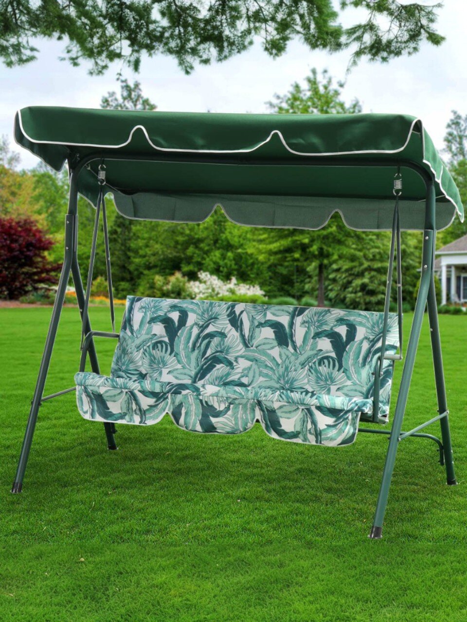 Вы можете приобрести «Качели садовые 3-местные, 170х110х153 см, 210 кг, Тропические листья, зеленые, Y6-1987-2, металл» и другие товары в нашем интернет-магазине в Клинцах по низким ценам и с бесплатным самовывозом.