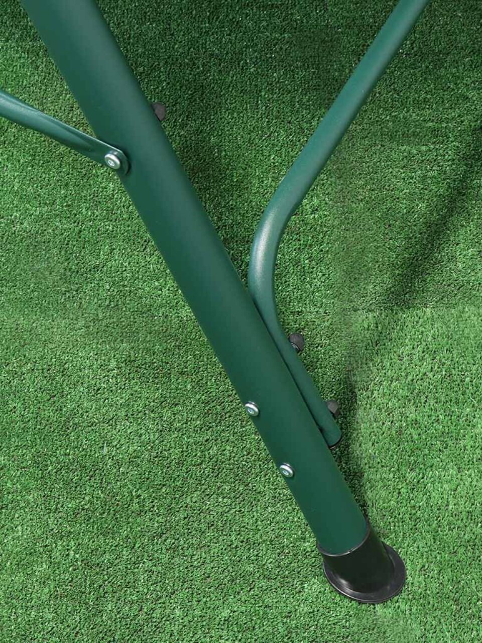 Качели оснащены тентом из полиэстера, который защитит от палящего солнца и легкого дождя, позволяя наслаждаться отдыхом на свежем воздухе в любую погоду. Зеленый цвет качелей гармонично впишется в природный ландшафт вашего сада, создавая атмосферу гармонии и спокойствия.