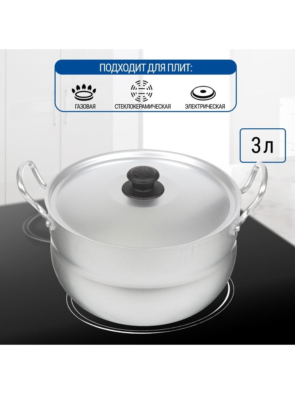 Кастрюля алюминиевая Калитва 3 л с крышкой — лёгкое решение для дома и дачи: быстрое приготовление, универсальный размер, цена без переплат.