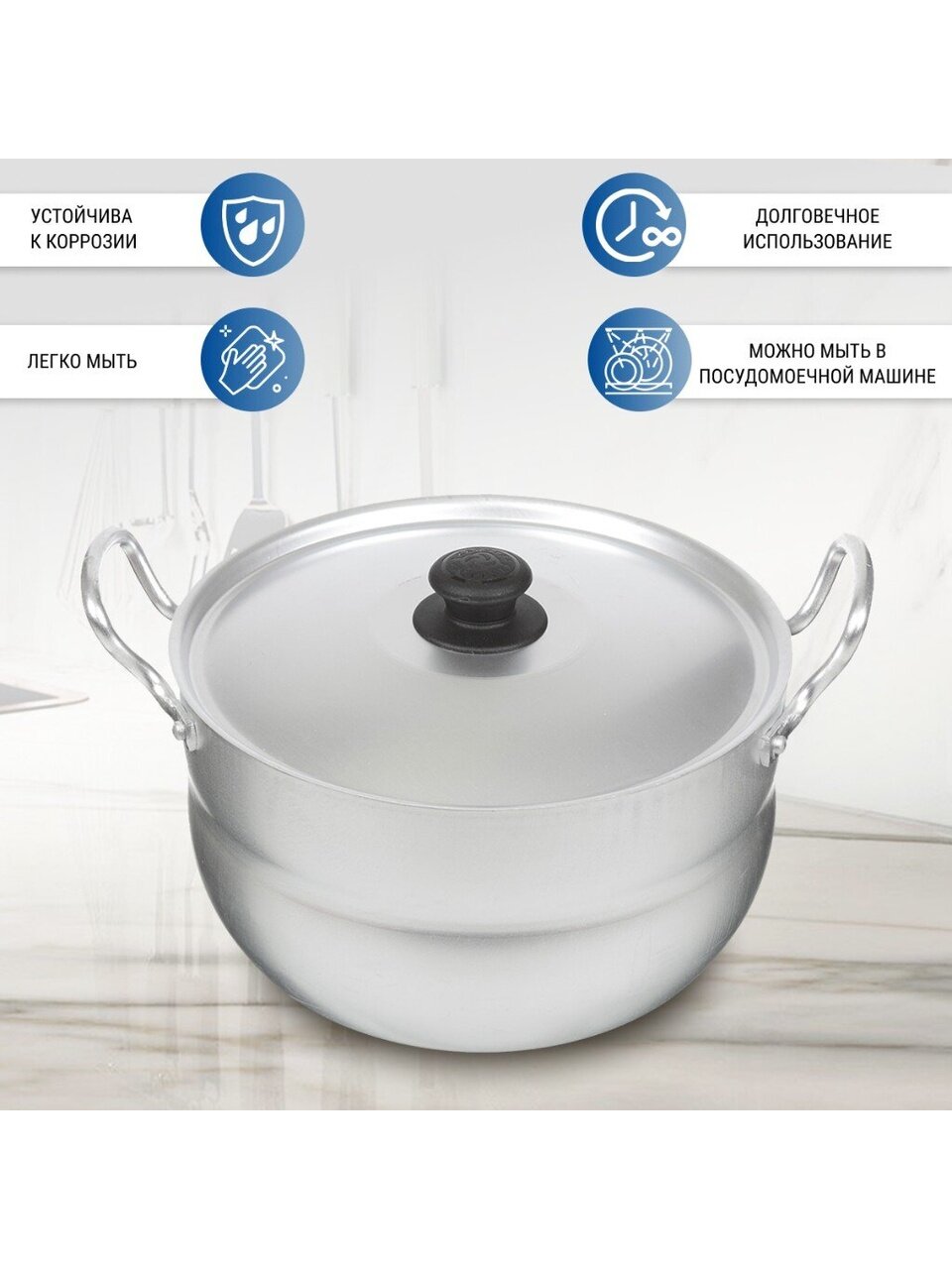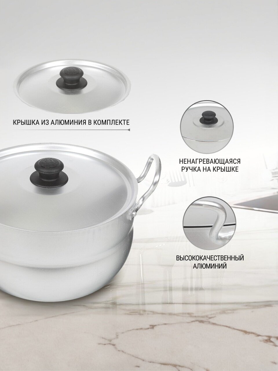 Кастрюля алюминий 3 л Калитва — выбор для тех, кто ищет недорогую кастрюлю для повседневного использования. Благодаря алюминию тепло равномерно распределяется, что ускоряет приготовление супов, пельменей, макарон и компотов. Кастрюля не имеет антипригарного и эмалированного покрытия, что упрощает уход и исключает сколы.