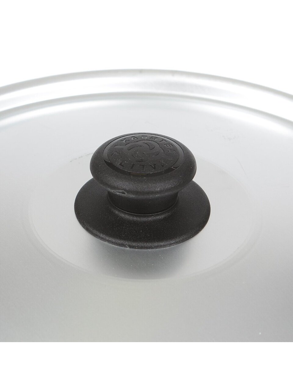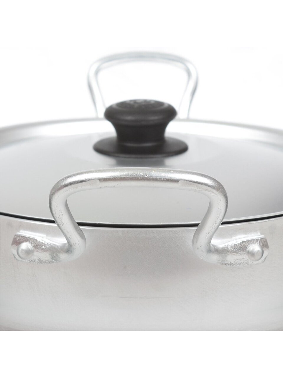 Объём 3 литра, диаметр по верхнему краю 20 см, высота без крышки 13 см, вес 0,45 кг. В комплекте алюминиевая крышка.