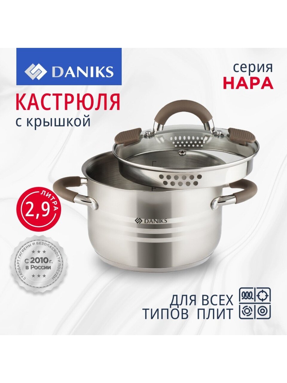 Кастрюля Daniks Нара 2.9 л из нержавеющей стали с капсульным дном — оптимальный выбор для индукции, быстрой готовки и долговечности. Закажите с выгодой!