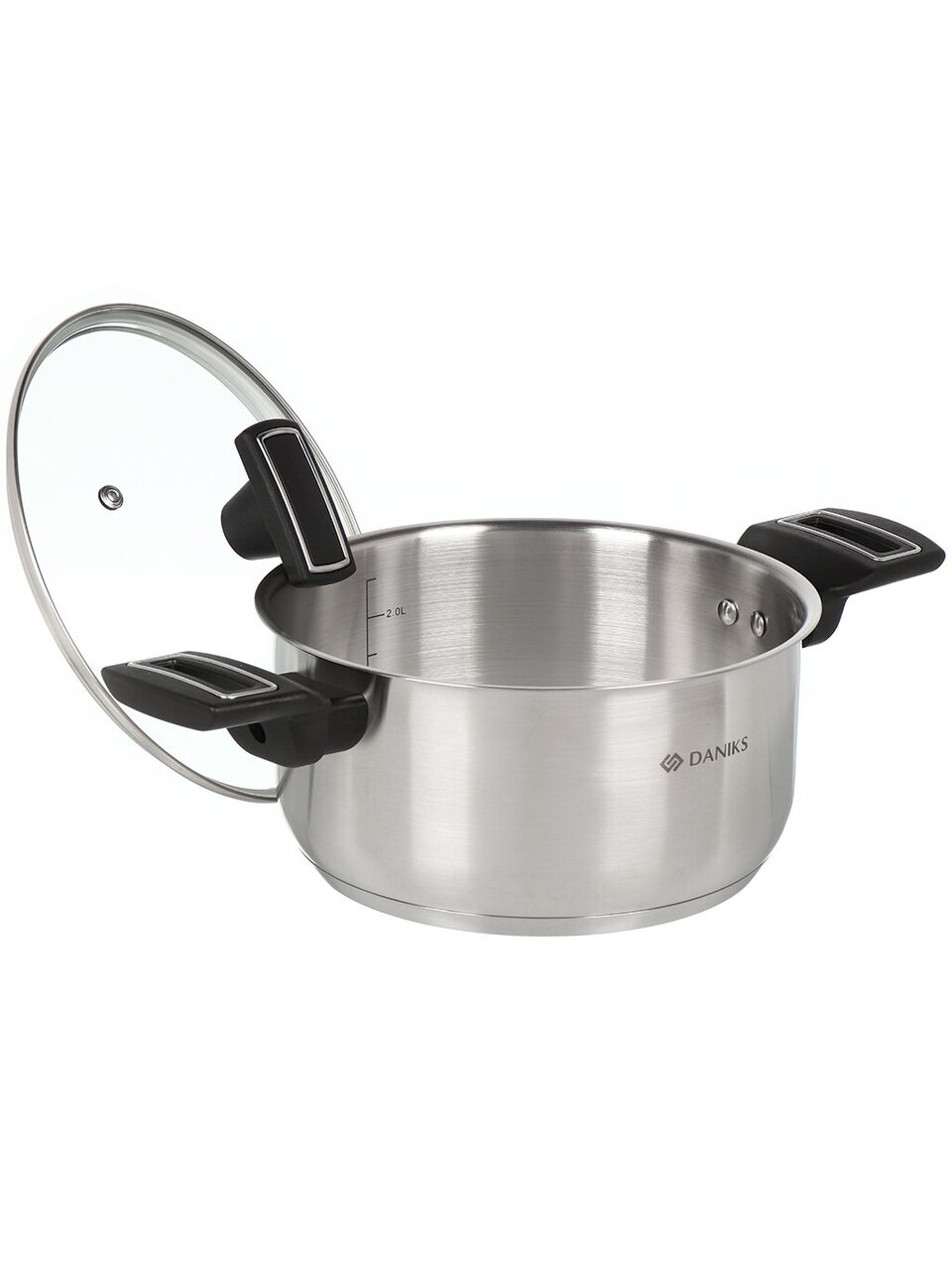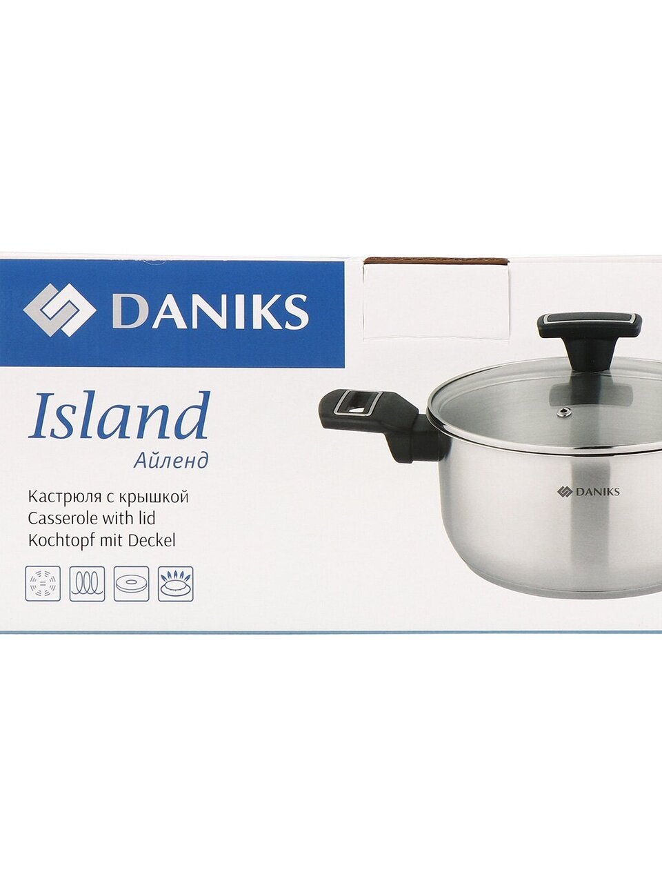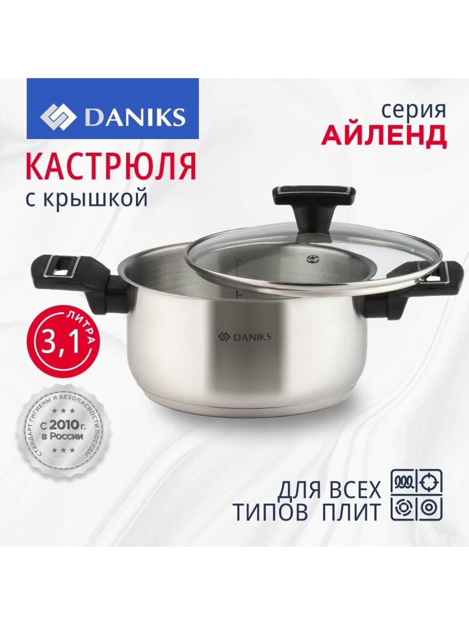 Кастрюля Daniks Айленд 3.1 л: универсальный выбор из нержавеющей стали с капсульным дном для всех типов плит. Прозрачная крышка, мерная шкала и надежность — готовьте с удовольствием!