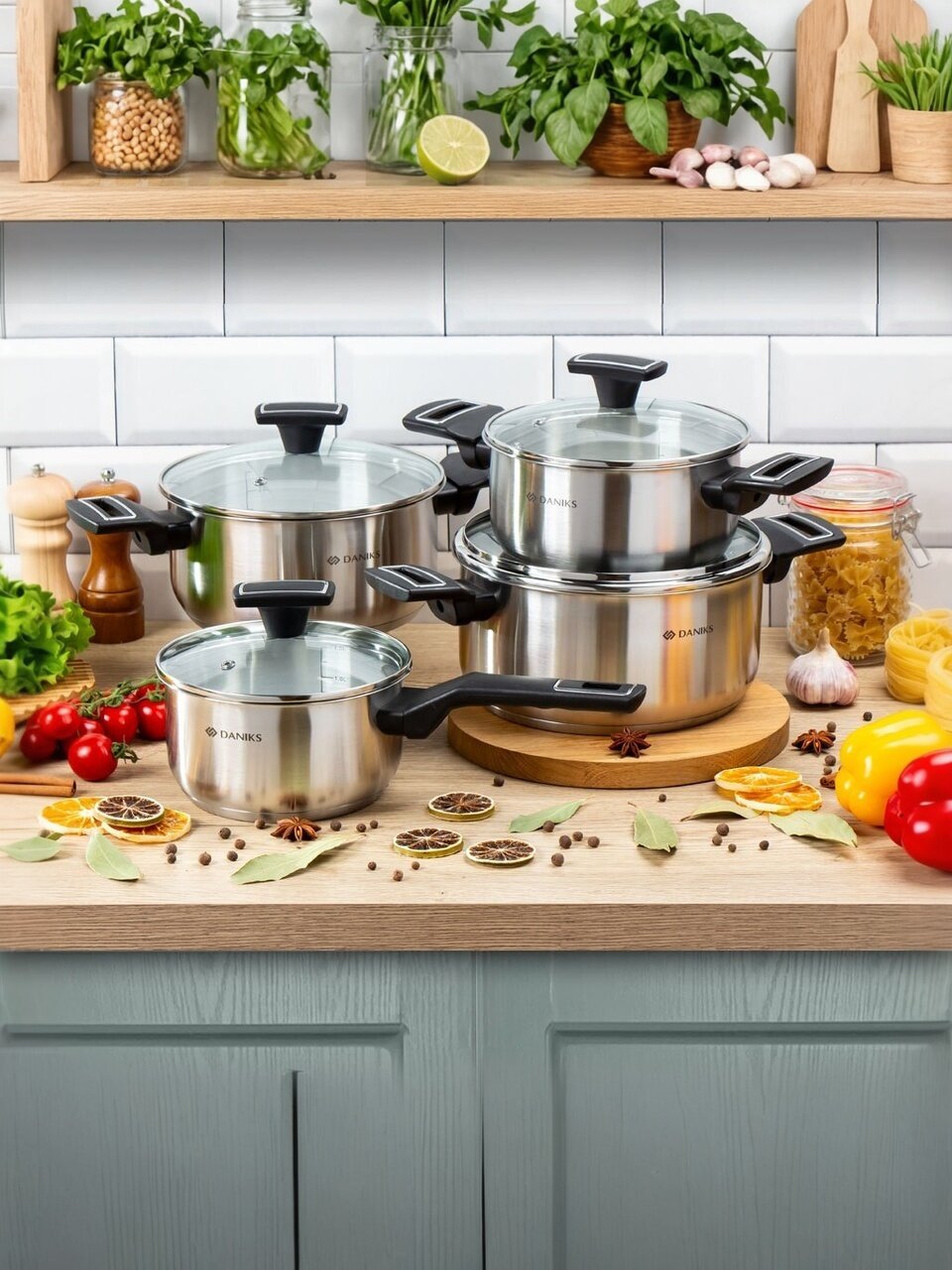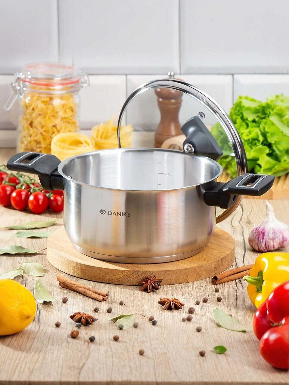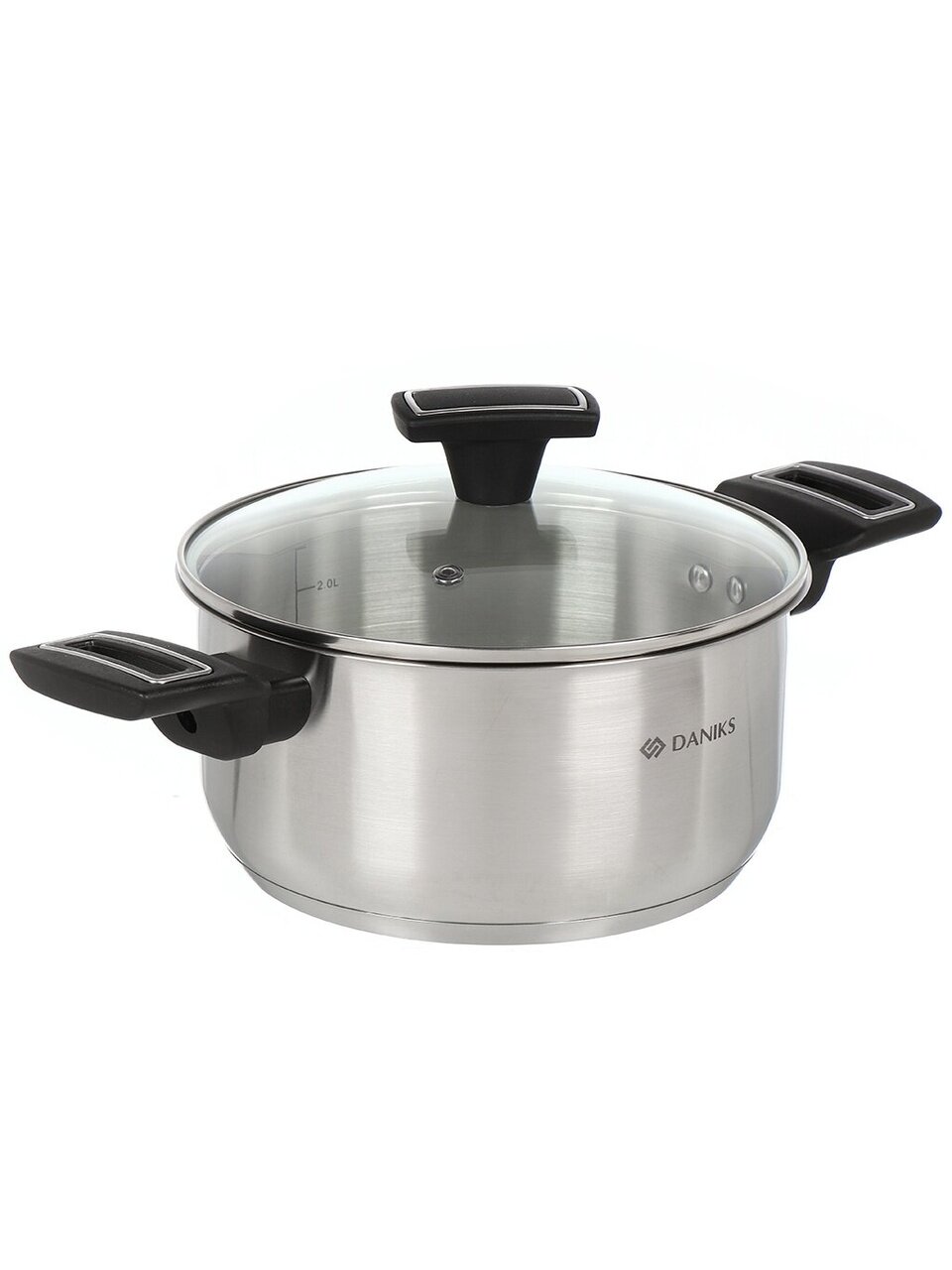Кастрюля Daniks Айленд 3.1 л: универсальный выбор из нержавеющей стали с капсульным дном для всех типов плит. Прозрачная крышка, мерная шкала и надежность — готовьте с удовольствием!