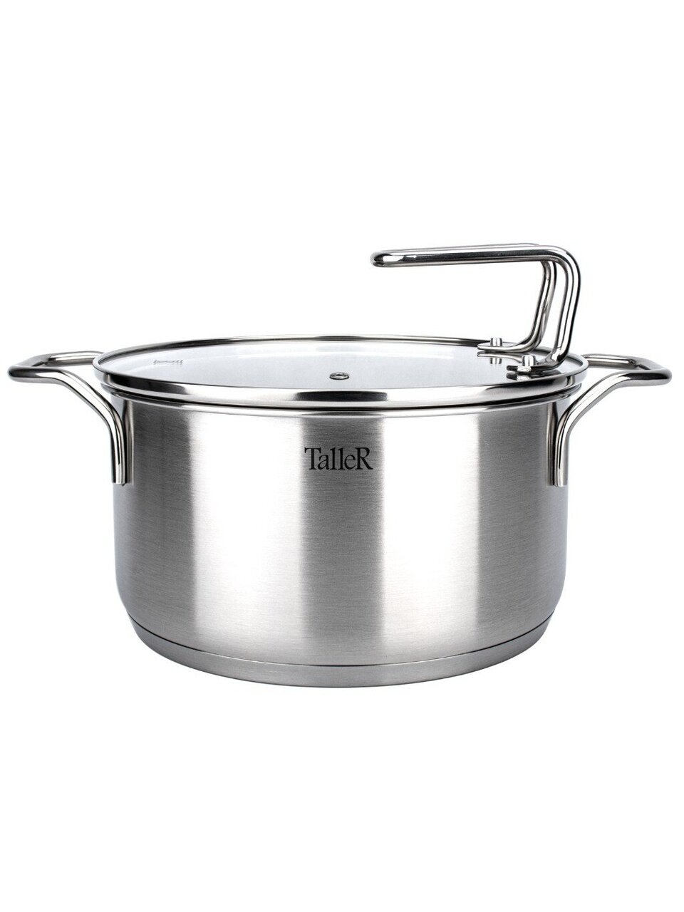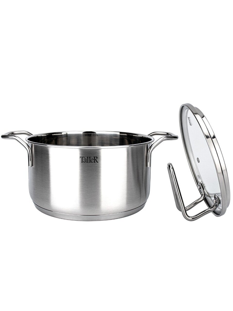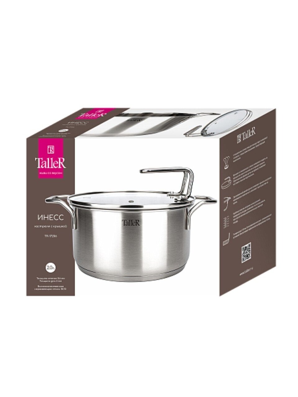 Кастрюля Taller Инесс 2 л из нержавеющей стали 18/10 с капсульным дном и стеклянной крышкой — оптимальное решение для индукционных и других плит. Готовьте супы, каши и пельмени без лишних хлопот.