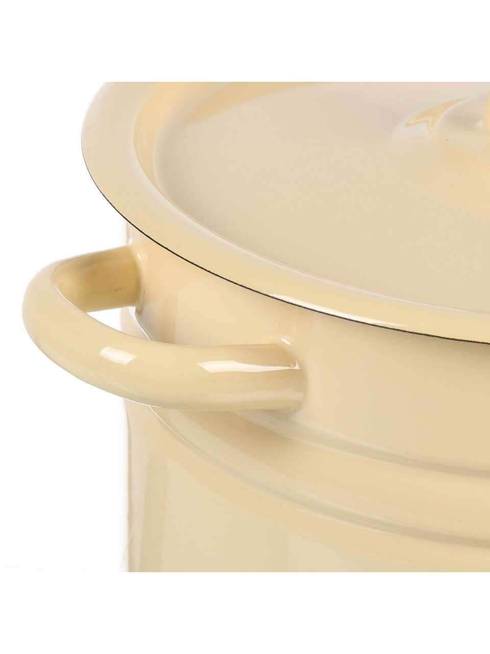 В отличие от алюминиевых и нержавеющих аналогов, эмалированная сталь обеспечивает равномерный нагрев без пригорания (при правильном использовании), а крышка из стали сохраняет тепло внутри. Если вы ищете, какую кастрюлю купить для дачи или для заготовок, обратите внимание: модель подходит для газовых, электрических и стеклокерамических плит, а также допускается мытьё в посудомоечной машине. Не предназначена для индукционных плит — это важно учитывать при выборе.