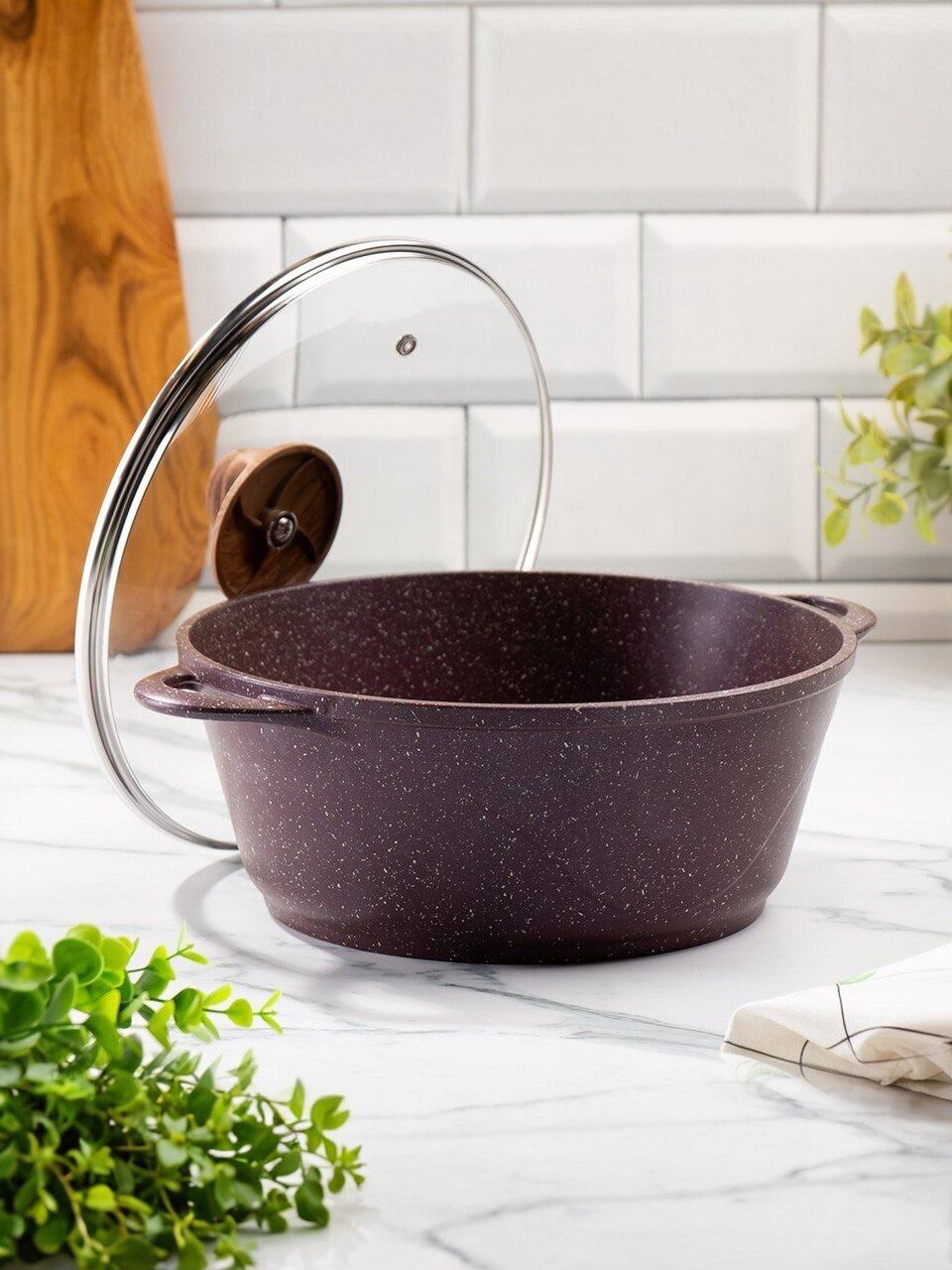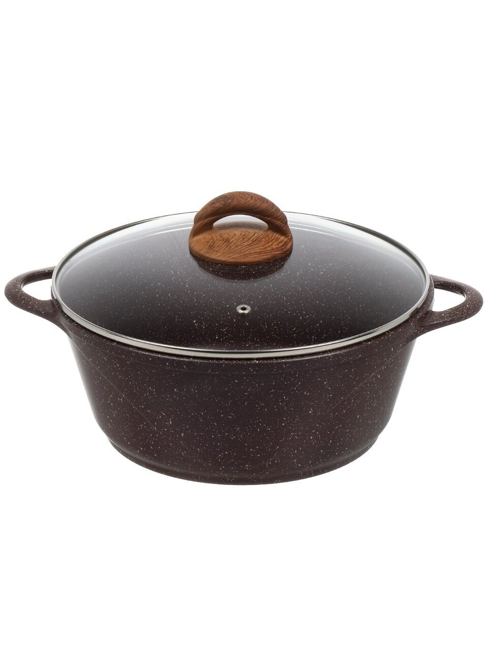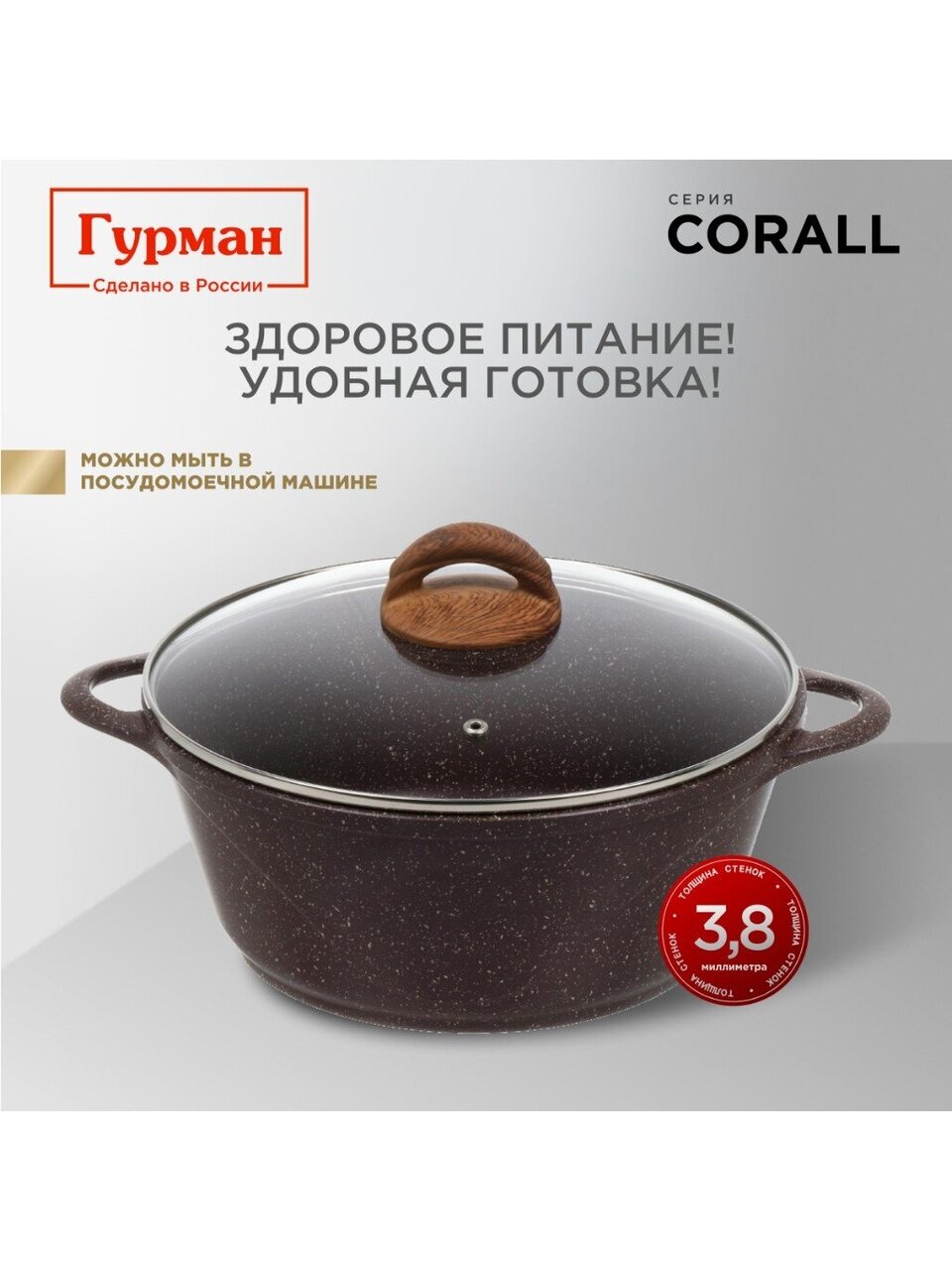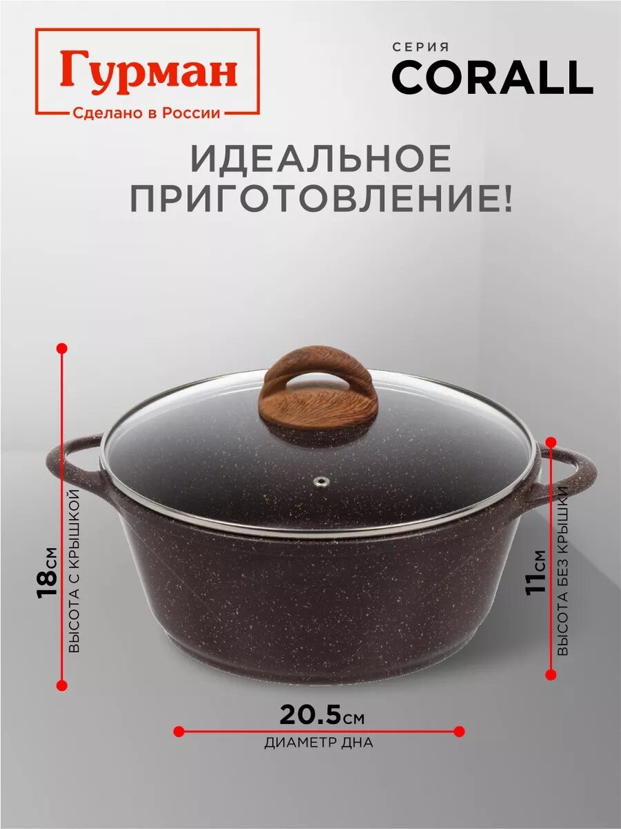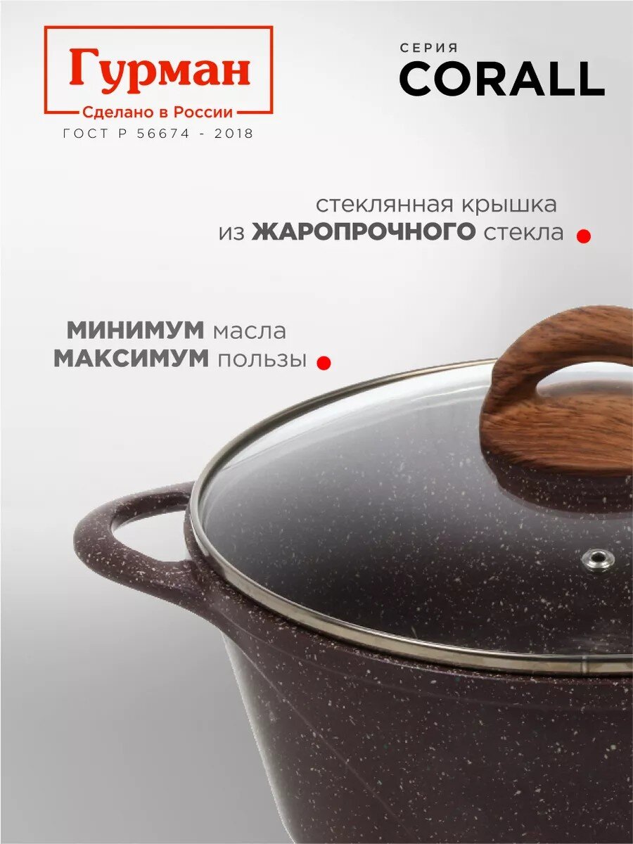 Кастрюля 4 л Гурман Coral — алюминий с гранитным антипригарным покрытием, подходит для индукции, стеклянная крышка, идеальна для дома и дачи