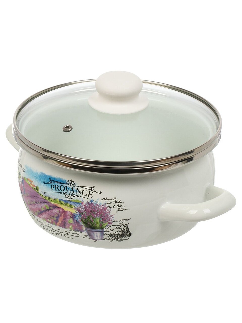 Этот вариант отлично подойдет как для семейных завтраков, так и для подарка благодаря стильному дизайну с лавандовым принтом. Если вы сомневаетесь, чем отличается эмалированная кастрюля от нержавеющей — эмаль не впитывает запахи, а белый цвет с декоративным рисунком выгодно смотрится на любой кухне.