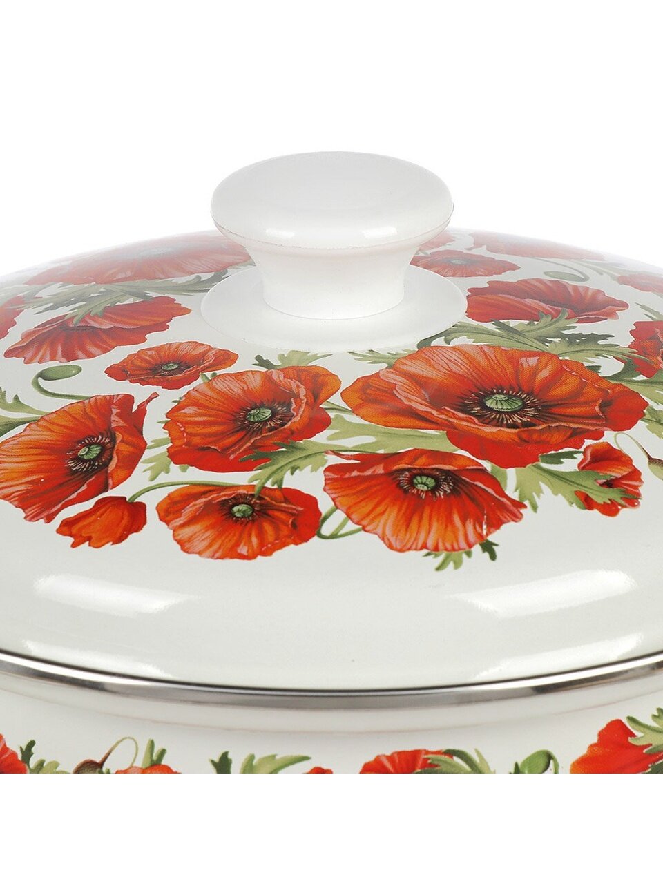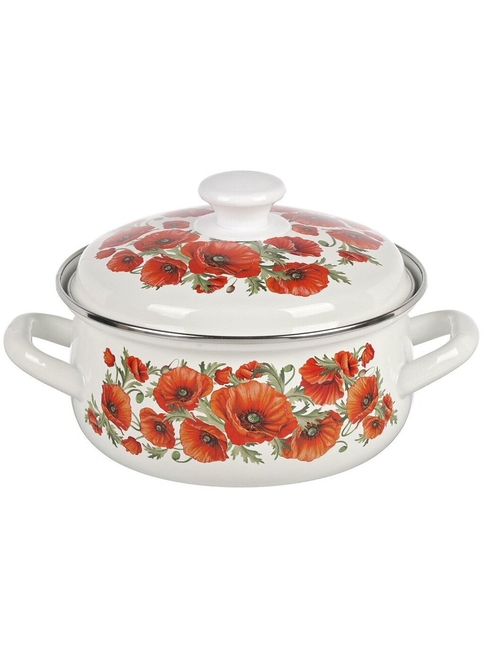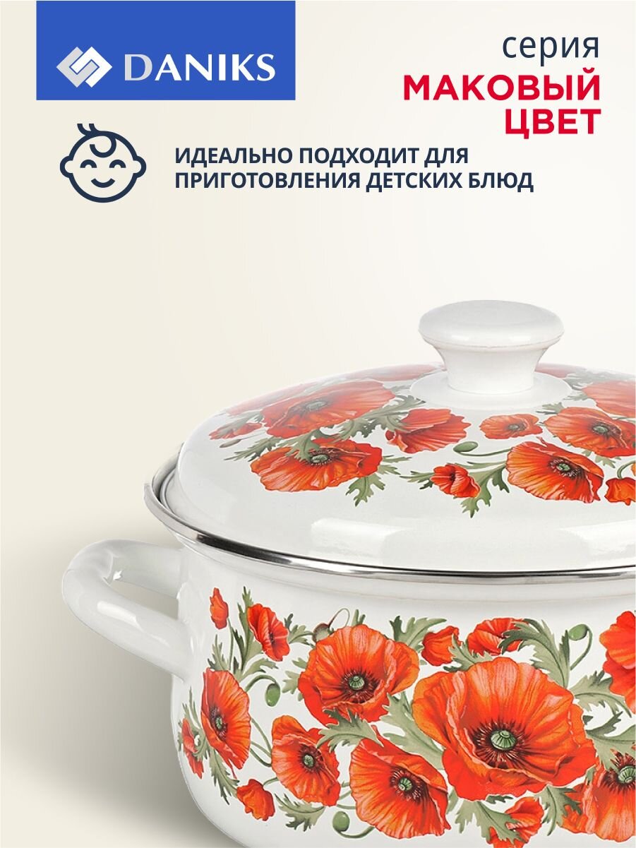 Эмалированная кастрюля Daniks «Маковый цвет», 2 л: долговечная сталь, безопасная эмаль, идеальна для дома и дачи — готовьте любимые блюда без хлопот.