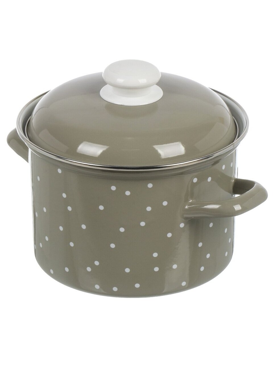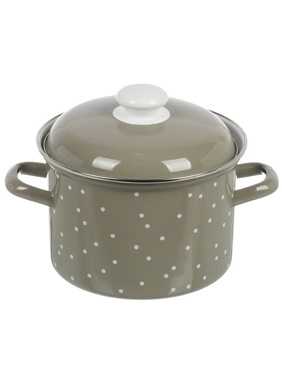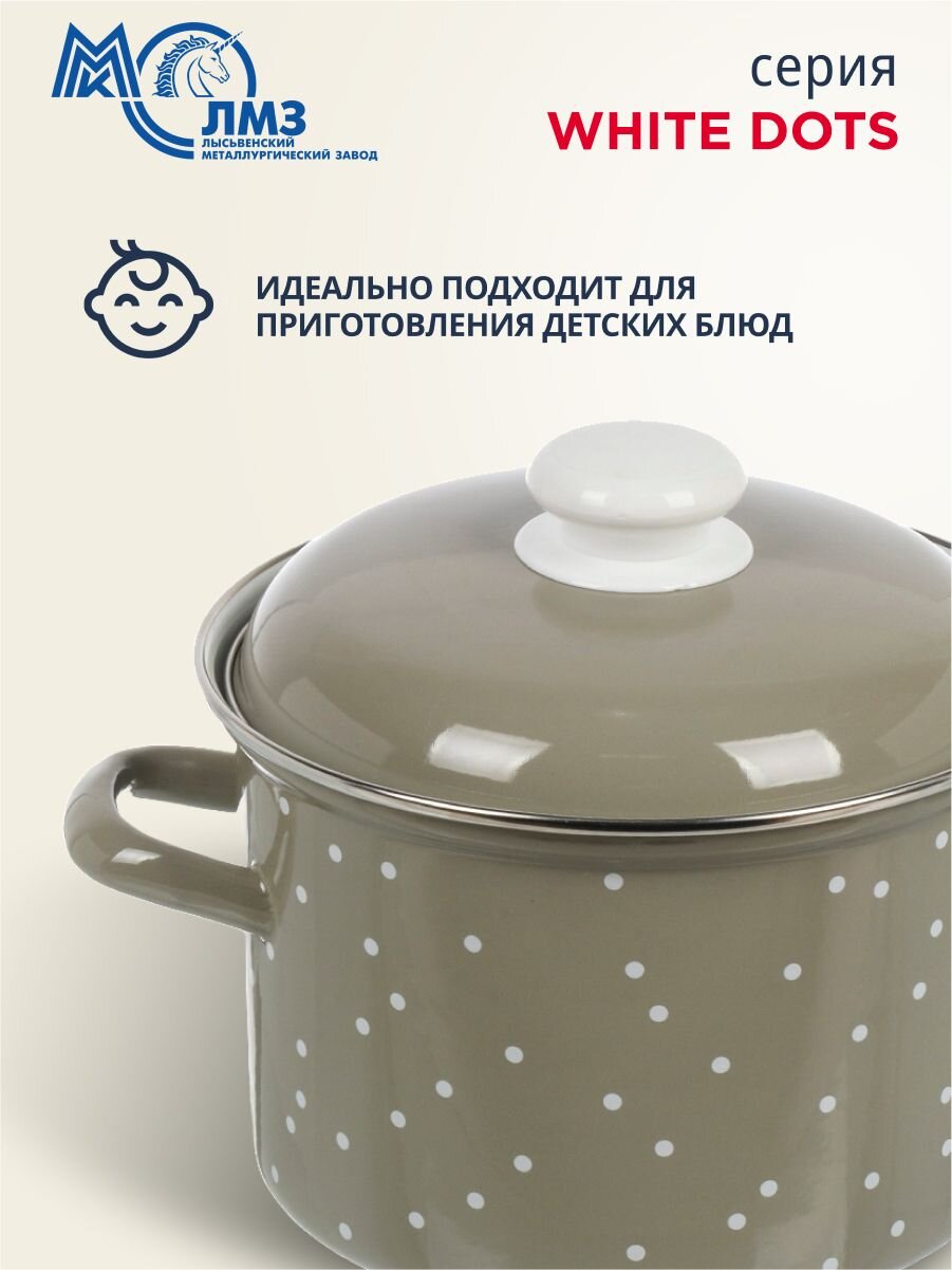 Кастрюля эмалированная ЛЗЭП White dots 3 л — универсальное решение для кухни, подходит для индукции и посудомоечной машины, гарантирует безопасность и долговечность.