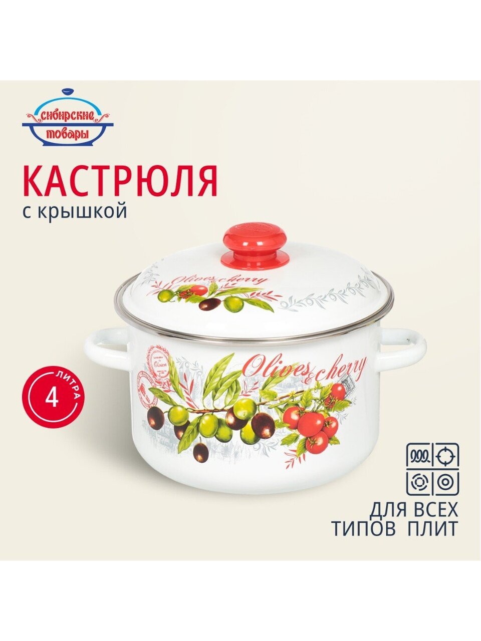 Вы можете приобрести «Кастрюля эмалированная сталь, 4 л, крышка сталь, цилиндрическая, Сибирские товары, Оливки и черри, 3MD201M, индукция» и другие товары в нашем интернет-магазине в Клинцах по низким ценам и с бесплатным самовывозом.