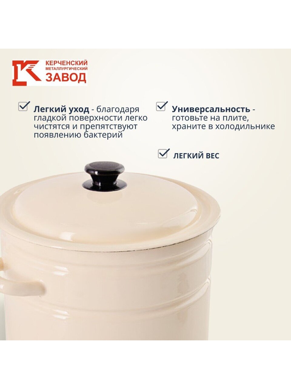 Кастрюля эмалированная 12 л Керченский завод — идеальный выбор для больших семей: варите суп, компот, пельмени, кашу или пюре без хлопот и пригорания.