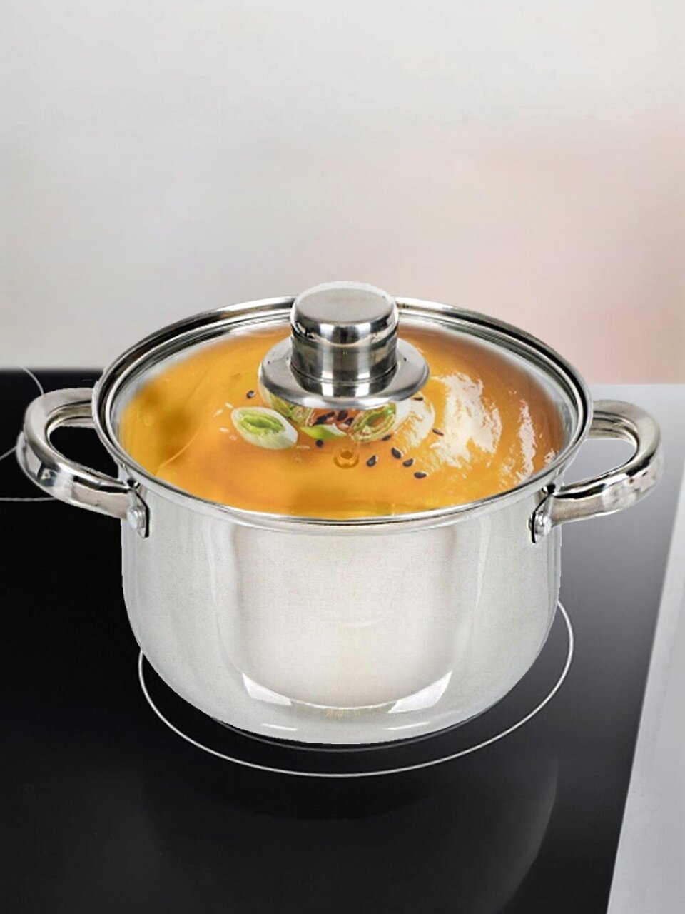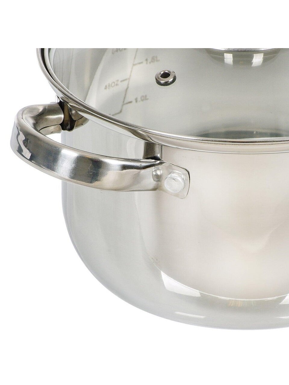 Кастрюля из нержавеющей стали 2,7 л с мерной шкалой и стеклянной крышкой — оптимальный выбор для дома и дачи: сохраняйте вкус блюд, экономьте время и силы.
