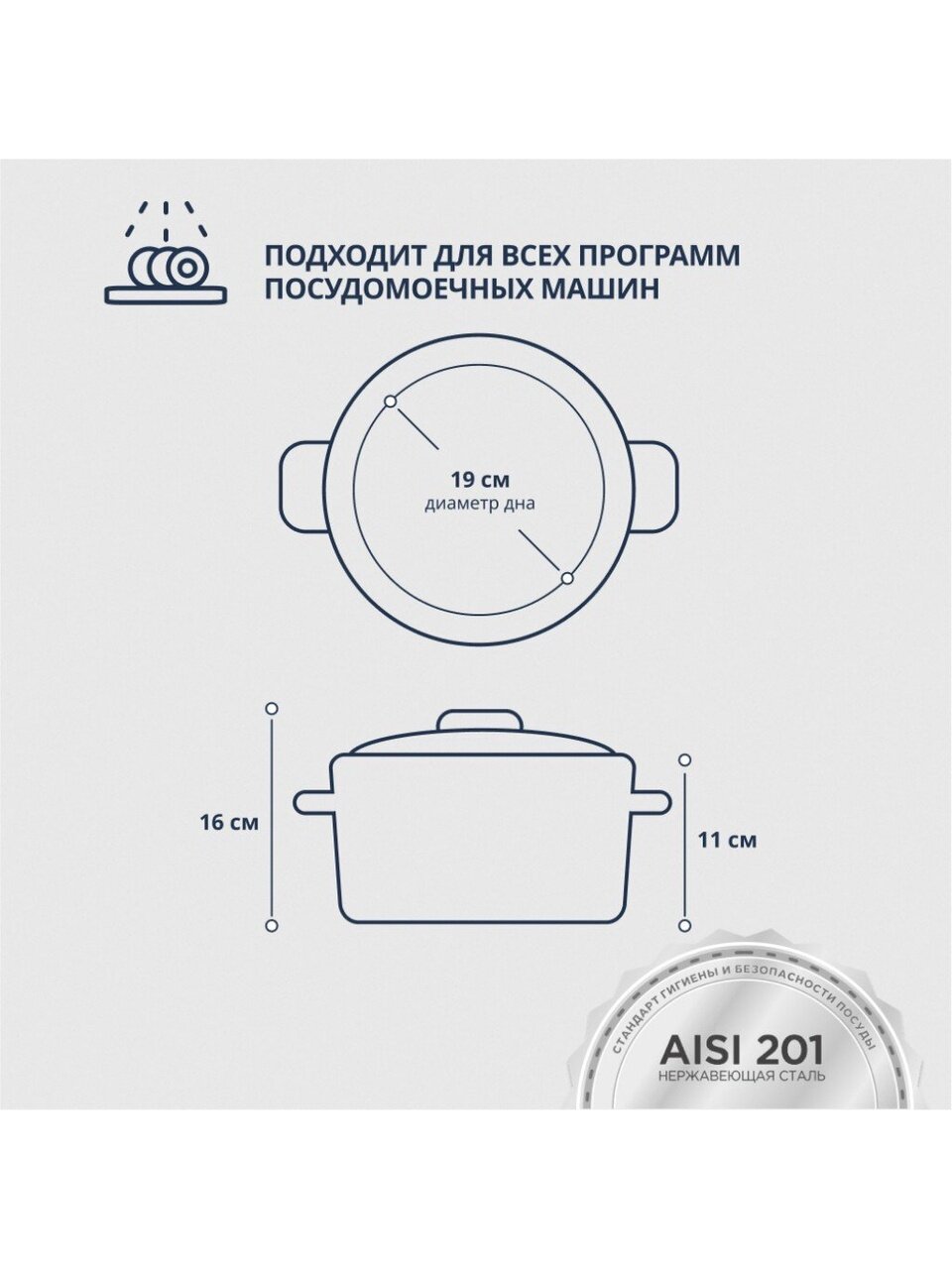 Для кого подходит эта кастрюля? Она легкая, вместительная, не требует сложного ухода, и станет отличным выбором для приготовления супов, каш, компотов и гарниров. Благодаря компактному диаметру (18 см) и высоте (11 см без крышки) кастрюля не займет много места на кухне и легко помещается в стандартные шкафы.