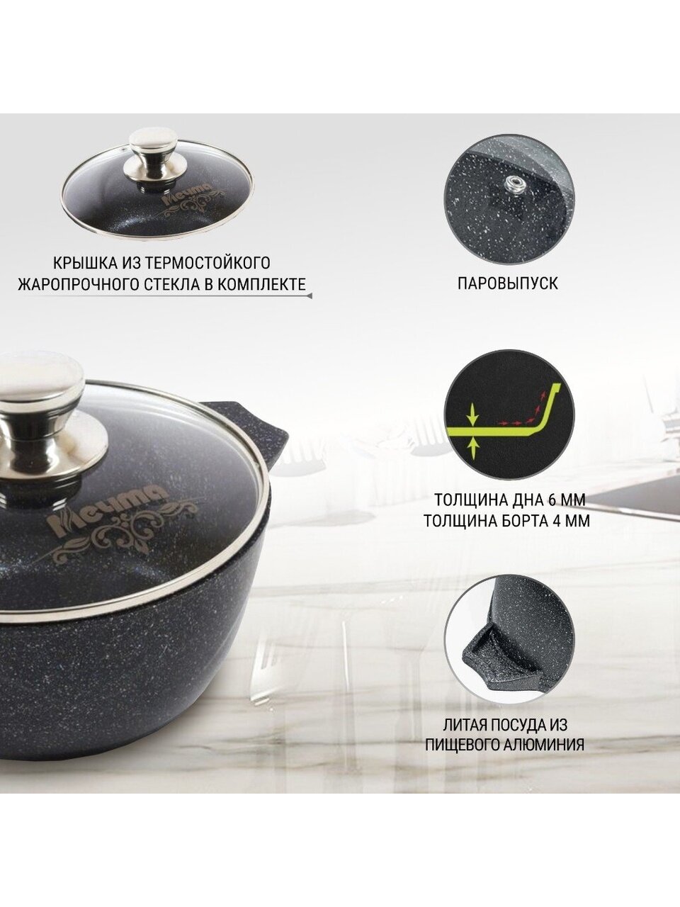 Если вы в поиске, какую кастрюлю купить недорого для дачи или дома, обратите внимание на коллекцию Мечта «Гранит star» — оптимальный баланс цены, качества и функциональности. Закажите сейчас и получите 12 месяцев гарантии от производителя, а также уверенность в безопасности и долговечности вашей посуды.