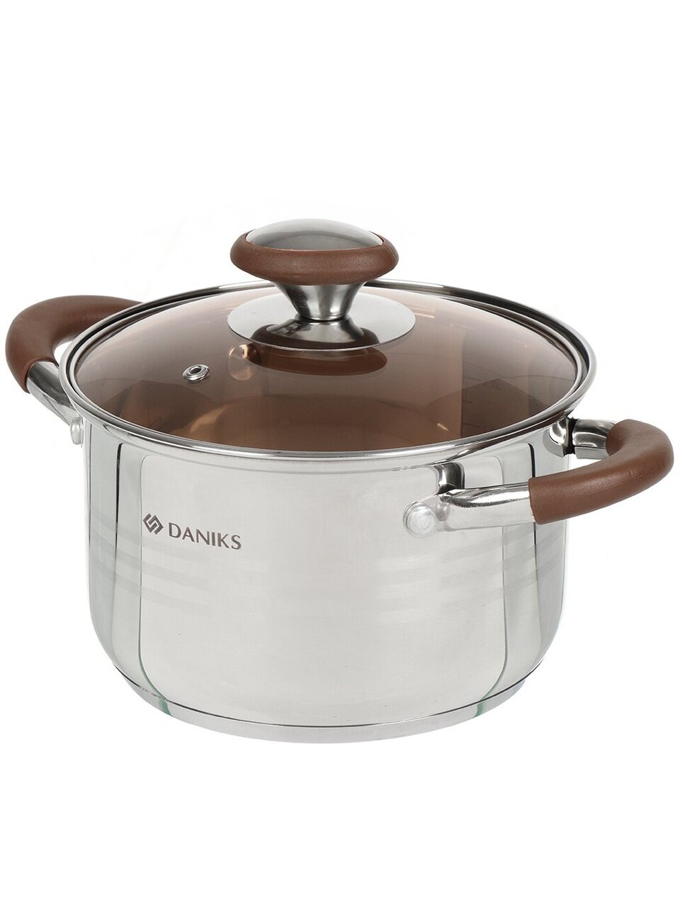 Кастрюля Daniks Веллингтон 2.8 л из нержавеющей стали с капсульным дном — оптимальный выбор для дома и дачи: долговечность, универсальность, стиль.