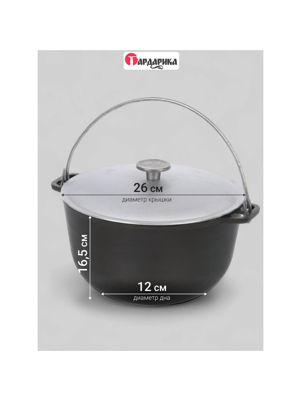 - Диаметр крышки: 260 мм.