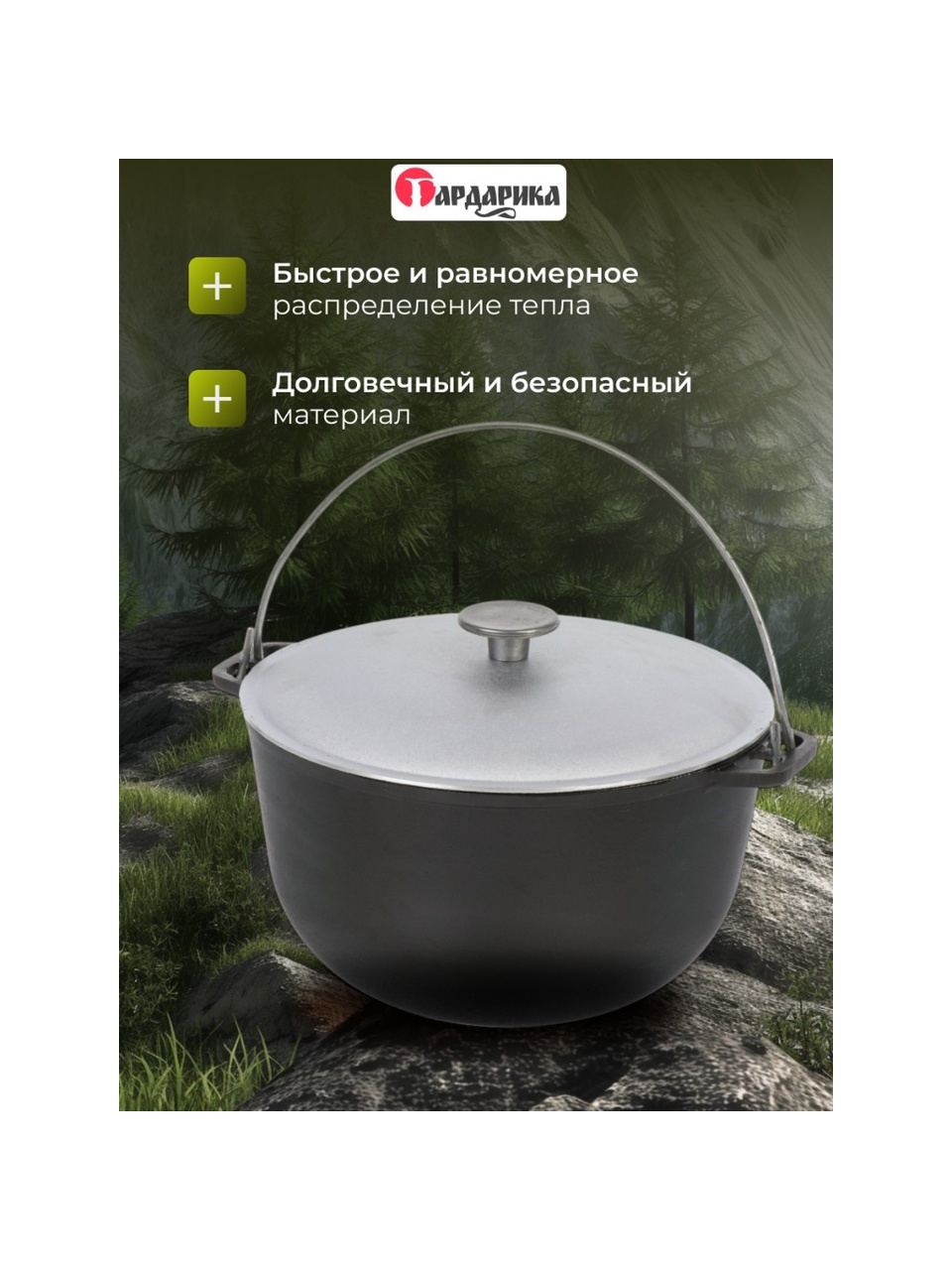 - В походном чугунном казане можно приготовить различные блюда, что делает его незаменимым помощником для туристов, рыбаков и охотников.