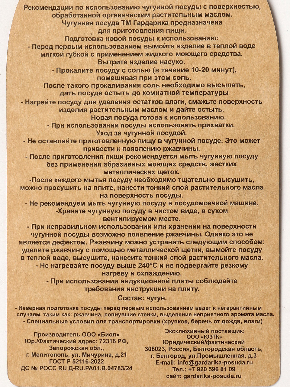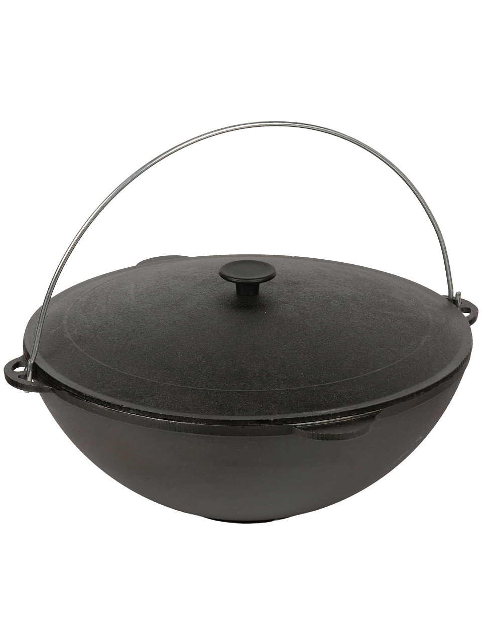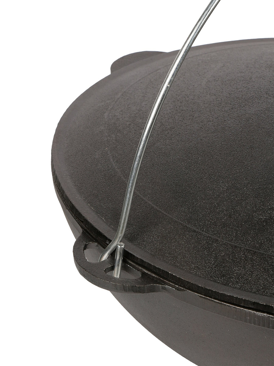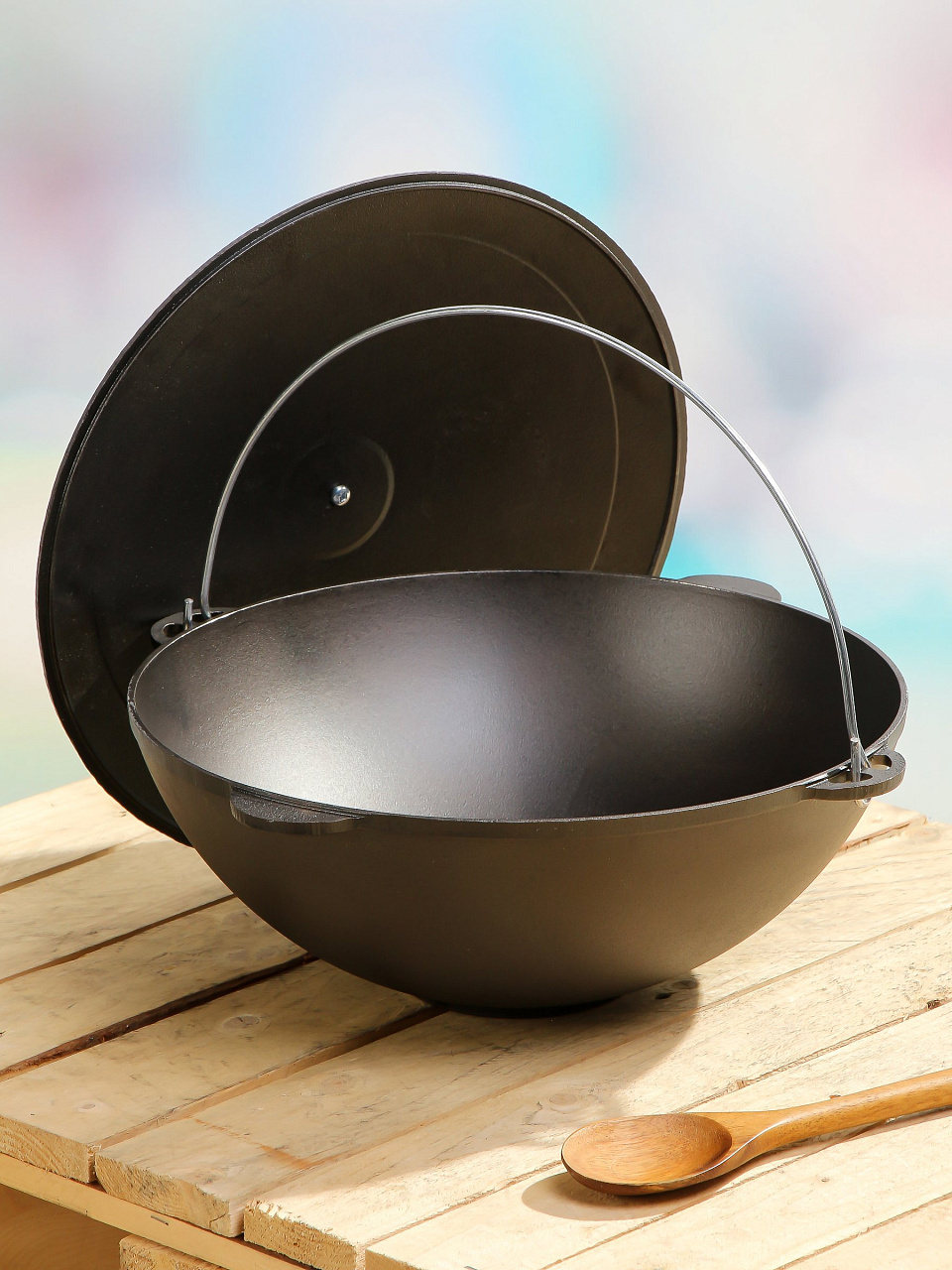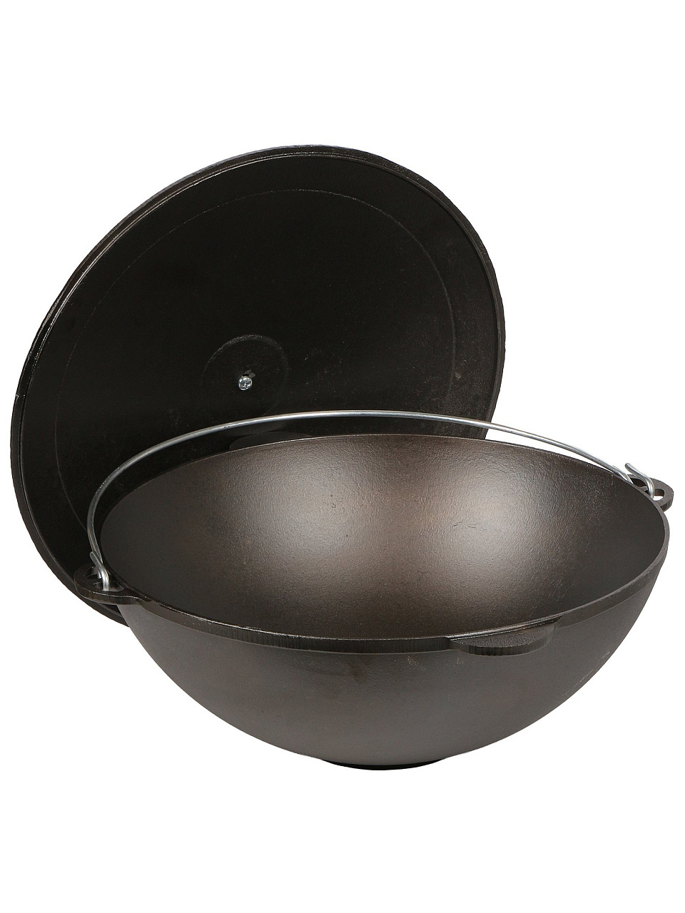 - Чугунная крышка и дужка: удобно переносить, сохраняет тепло, подходит для открытого огня.