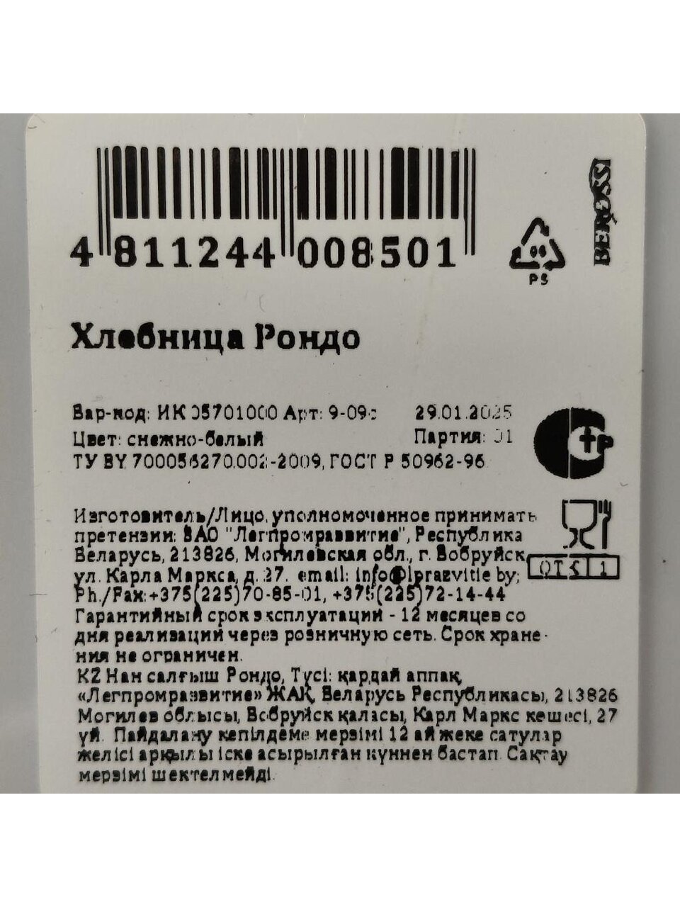 Вы можете приобрести «Хлебница пластик, 34.5х27.3х16.4 см, снежно-белая, Berossi, Rondo, ИК 05701000» и другие товары в нашем интернет-магазине в Воронеже по низким ценам и с бесплатным самовывозом.