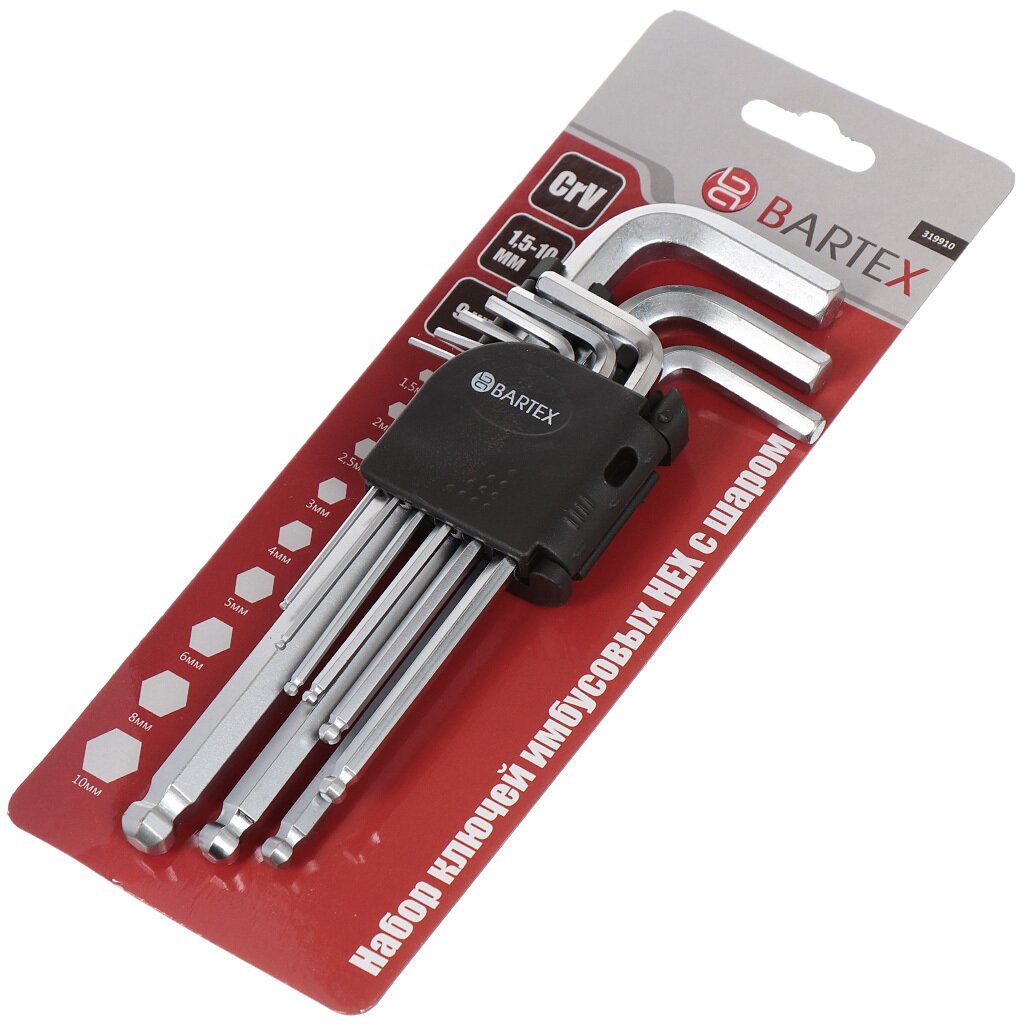 Набор Bartex из 9 имбусовых ключей предназначен для слесарно-монтажных работ. Такие инструменты со специальным шлицом в форме шестигранника отлично справляются с раскручиванием и закручиванием крепежных элементов.