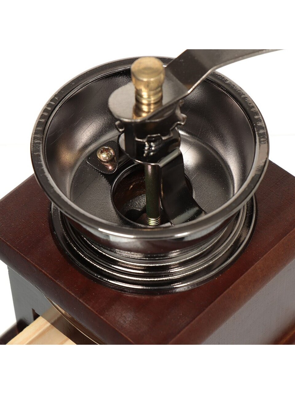 Ручная кофемолка, выполненная из дерева и металла, сочетает в себе эстетичность и функциональность. Она оснащена выдвижным деревянным ящичком для молотого кофе, металлической воронкой и удобной элегантной ручкой для помола. Изделие снабжено внутренним керамическим механизмом. Вы сможете регулировать степень помола от мелкого до крупного.