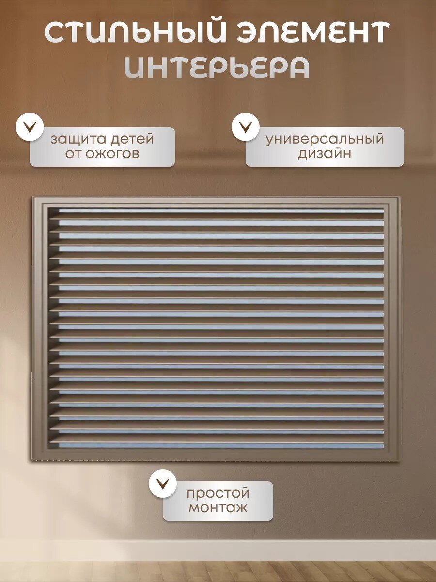 Радиаторная решетка позволяет закрыть ниши с батареями отопления, когда их внешний вид не вписывается в созданный интерьер. При этом теплый воздух будет беспрепятственно поступать в помещение через достаточное количество отверстий в жалюзи.