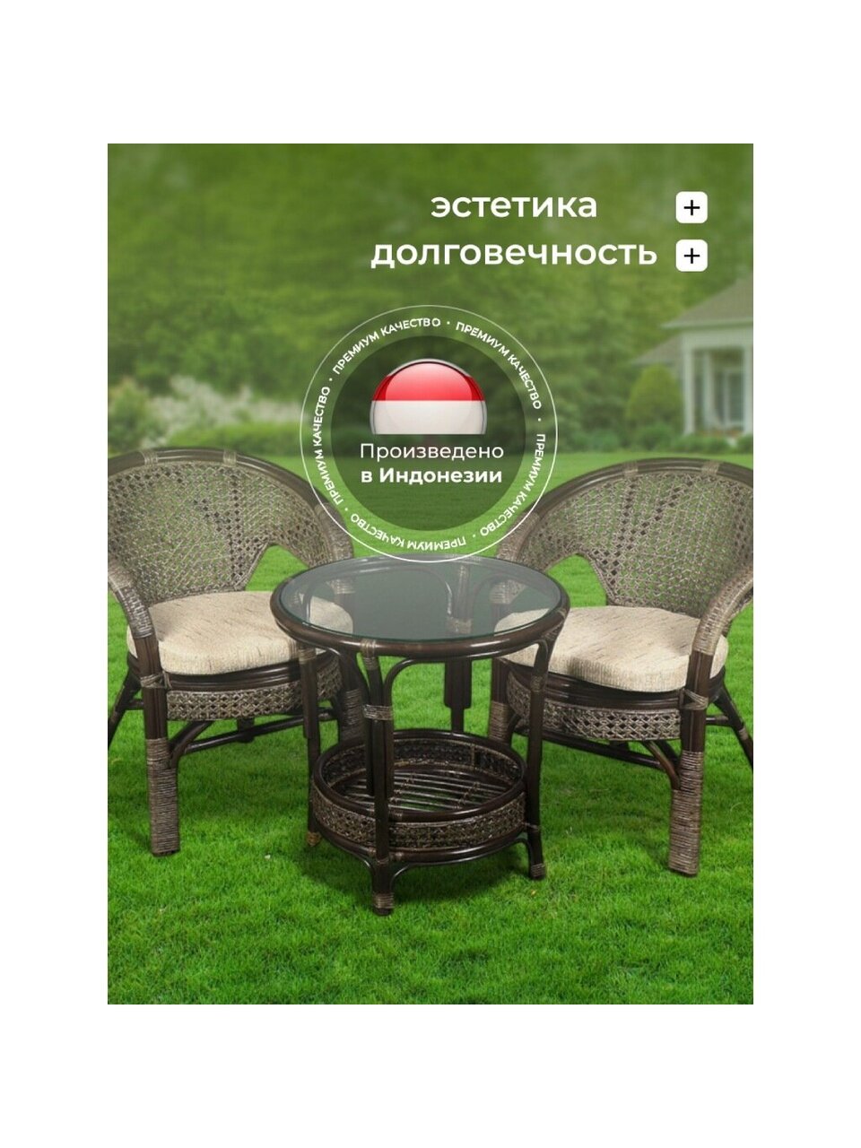 - В комплект входят удобные подушки для кресел.