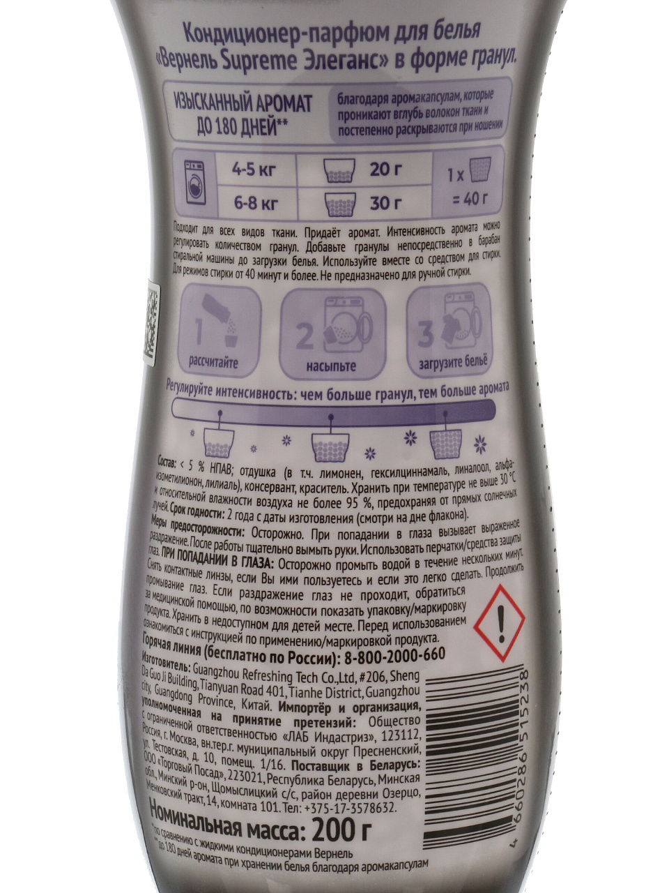 Кондиционер для белья в гранулах Вернель, 200 г, Супрэм Элеганс — стойкий аромат и свежесть белья до 12 недель, экономия времени и забота о тканях.
