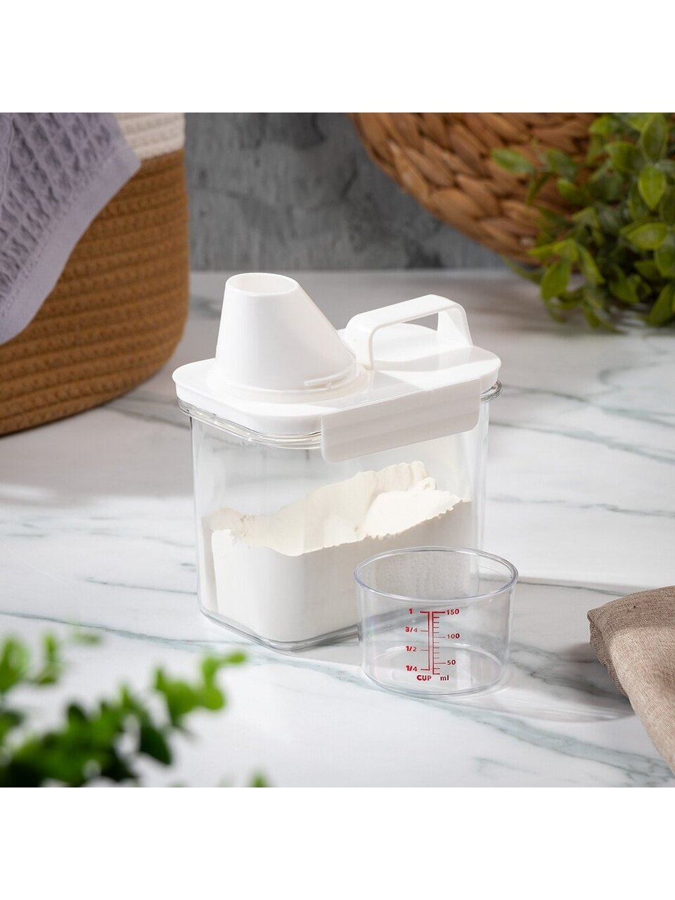 Контейнер предназначен для удобного и безопасного хранения стирального порошка. Изготовленный из высококачественного пластика, он обеспечивает герметичное закрытие, предотвращая распространение запахов и влаги, что помогает сохранить порошок в идеальном состоянии на протяжении всего срока годности.