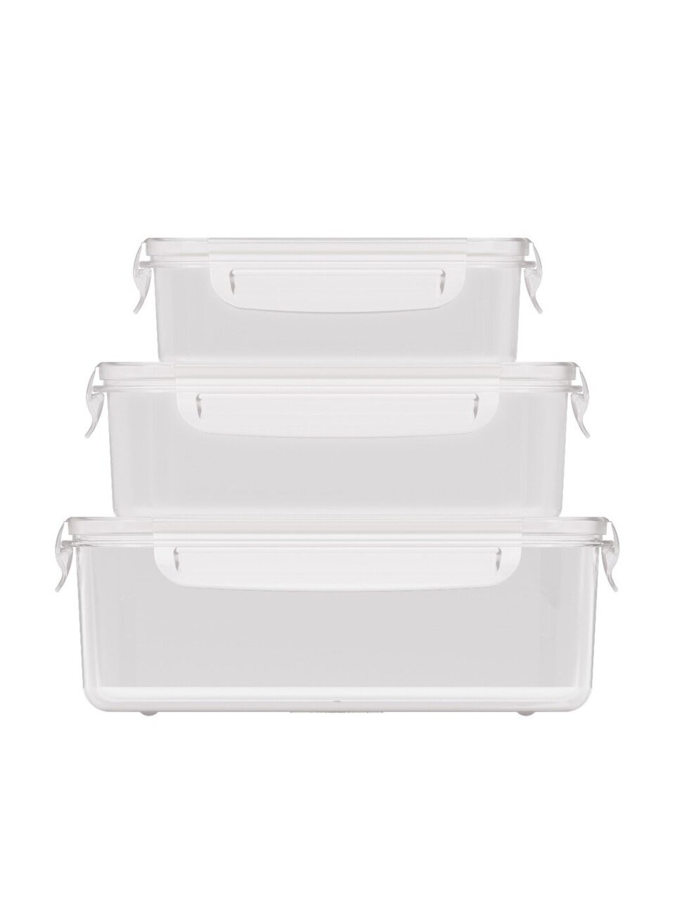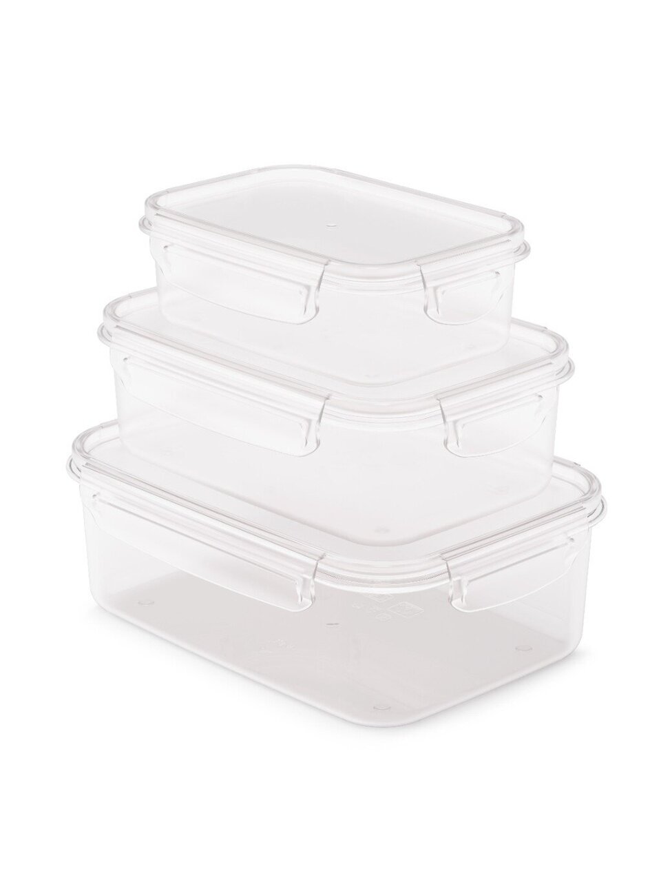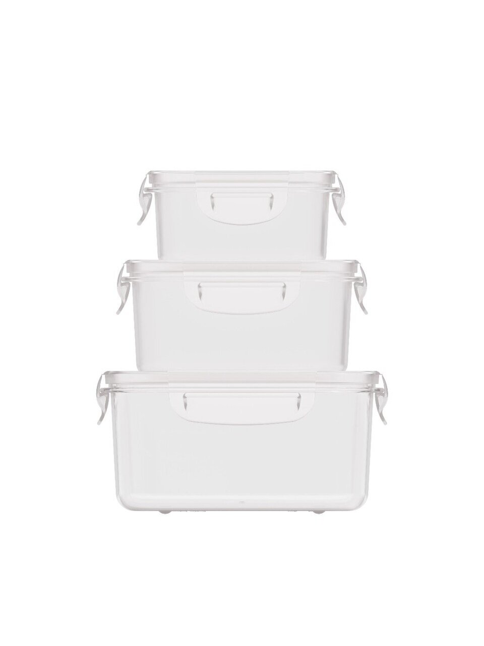 Набор пластиковых пищевых контейнеров 0.5, 1 и 1.6 л с герметичными защёлками — удобно хранить свежесть продуктов дома, на даче, в поездке. Безопасность и универсальность по доступной цене.
