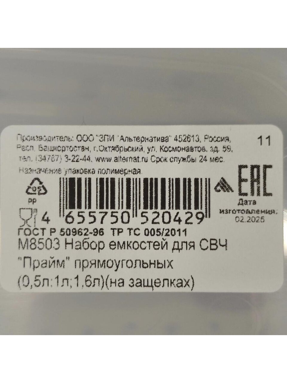 Вы можете приобрести «Контейнер пищевой пластик, 0.5, 1, 1.6 л, 3 шт, прямоугольный, на защелках, Альтернатива, Прайм, М8503» и другие товары в нашем интернет-магазине в Ярославле по низким ценам и с бесплатным самовывозом.
