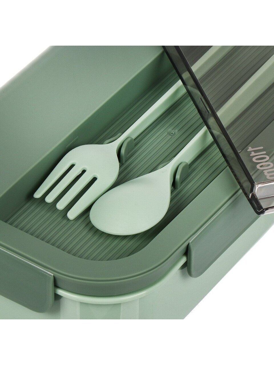 Контейнер подходит для горячих и холодных блюд, не впитывает запахи и легко очищается. Часто спрашивают, чем отличается этот ланч-бокс от других: здесь есть отдельные отсеки для разных блюд, ложка в комплекте и герметичная крышка с клапаном для выхода пара — идеальное решение для заботы о свежести и удобстве вашей еды.