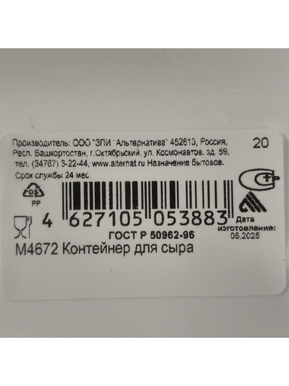 - Оптимальные размеры 19.5×10.5×8 см — подходит для большинства сортов сыра, выполнен из прочного пищевого пластика