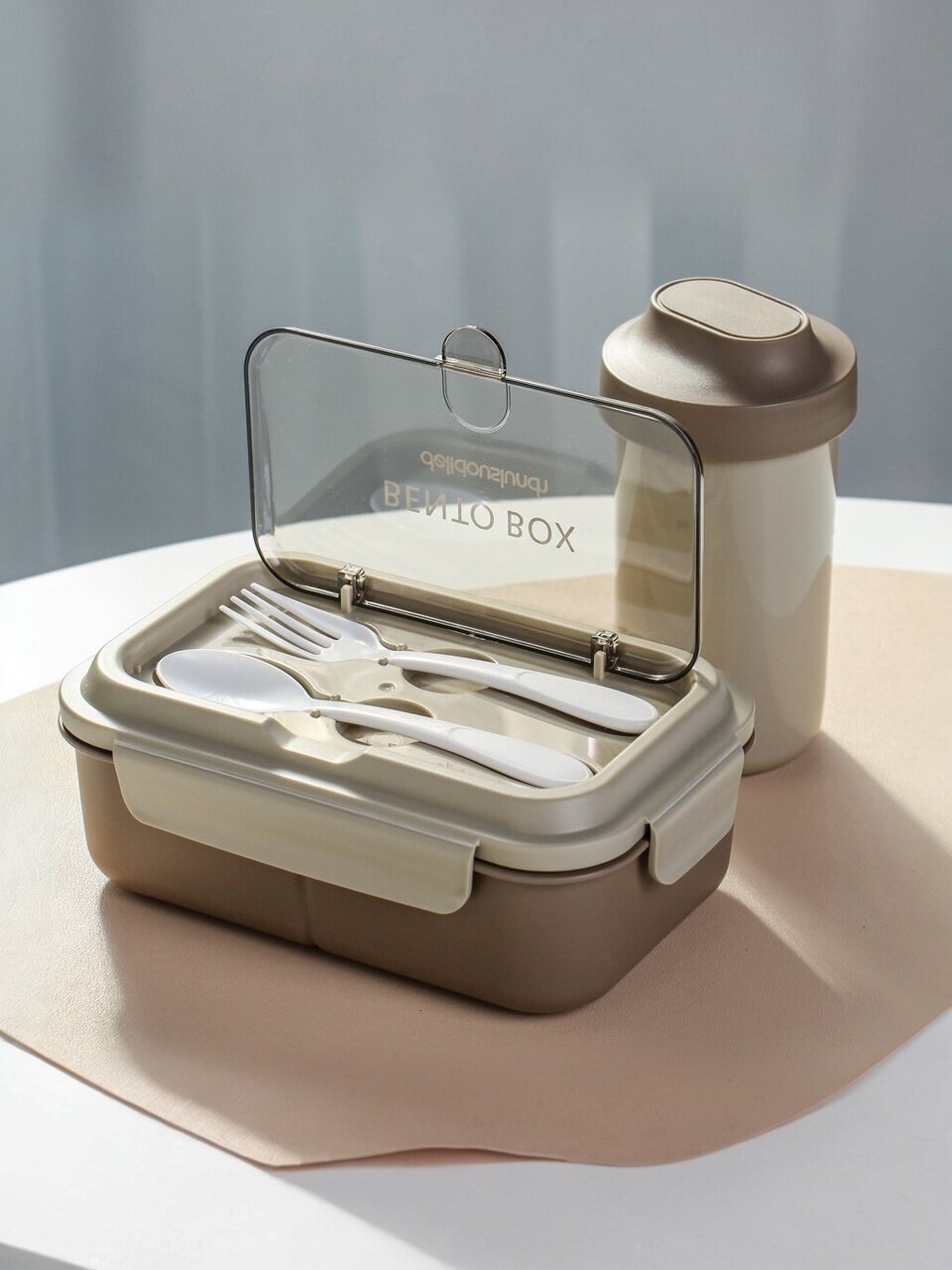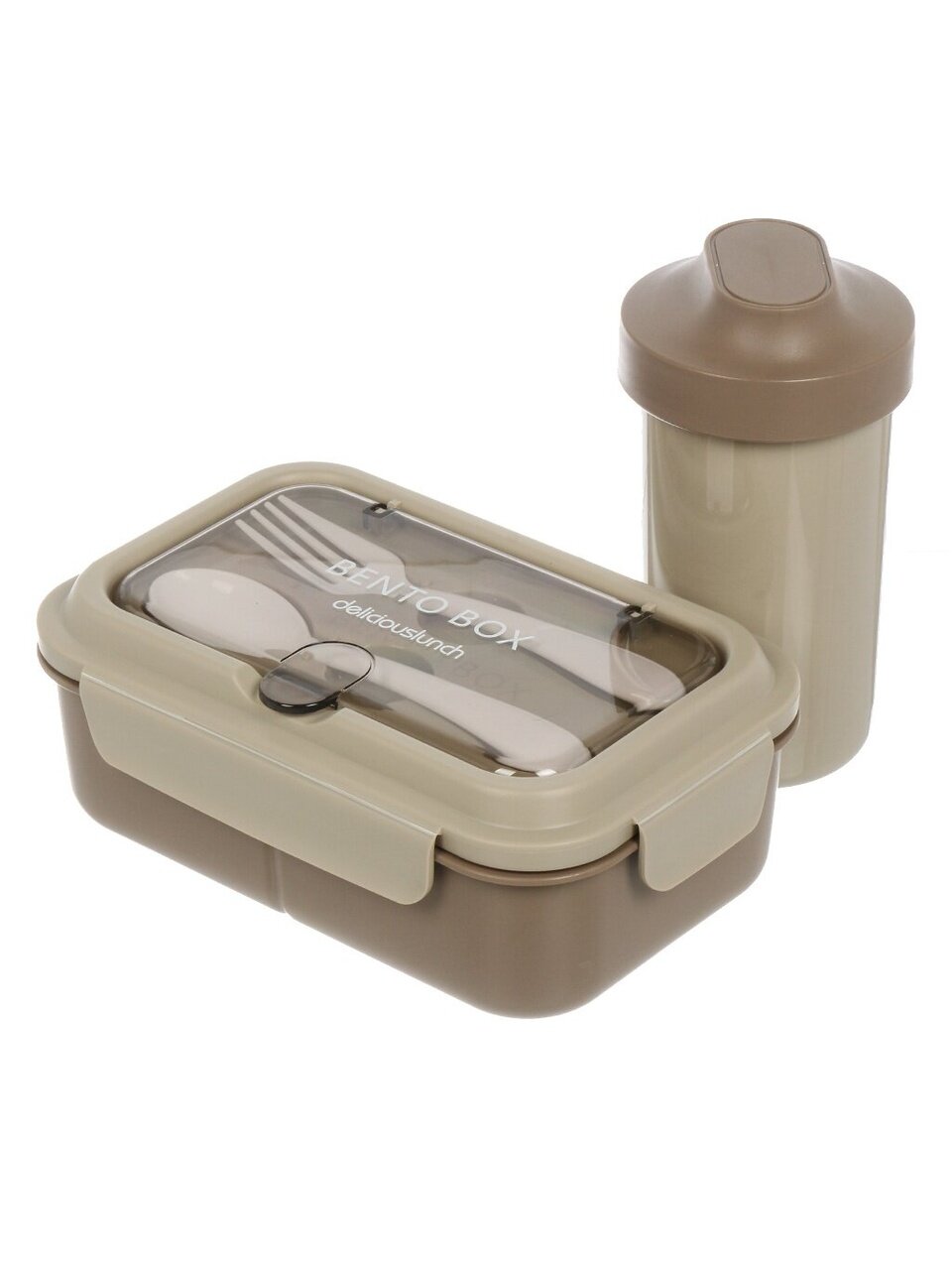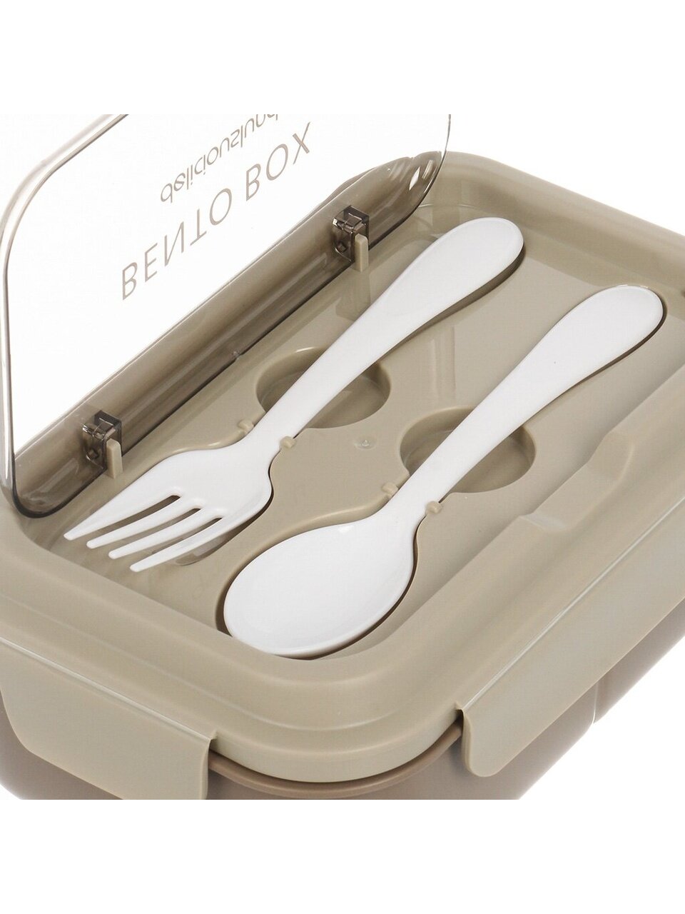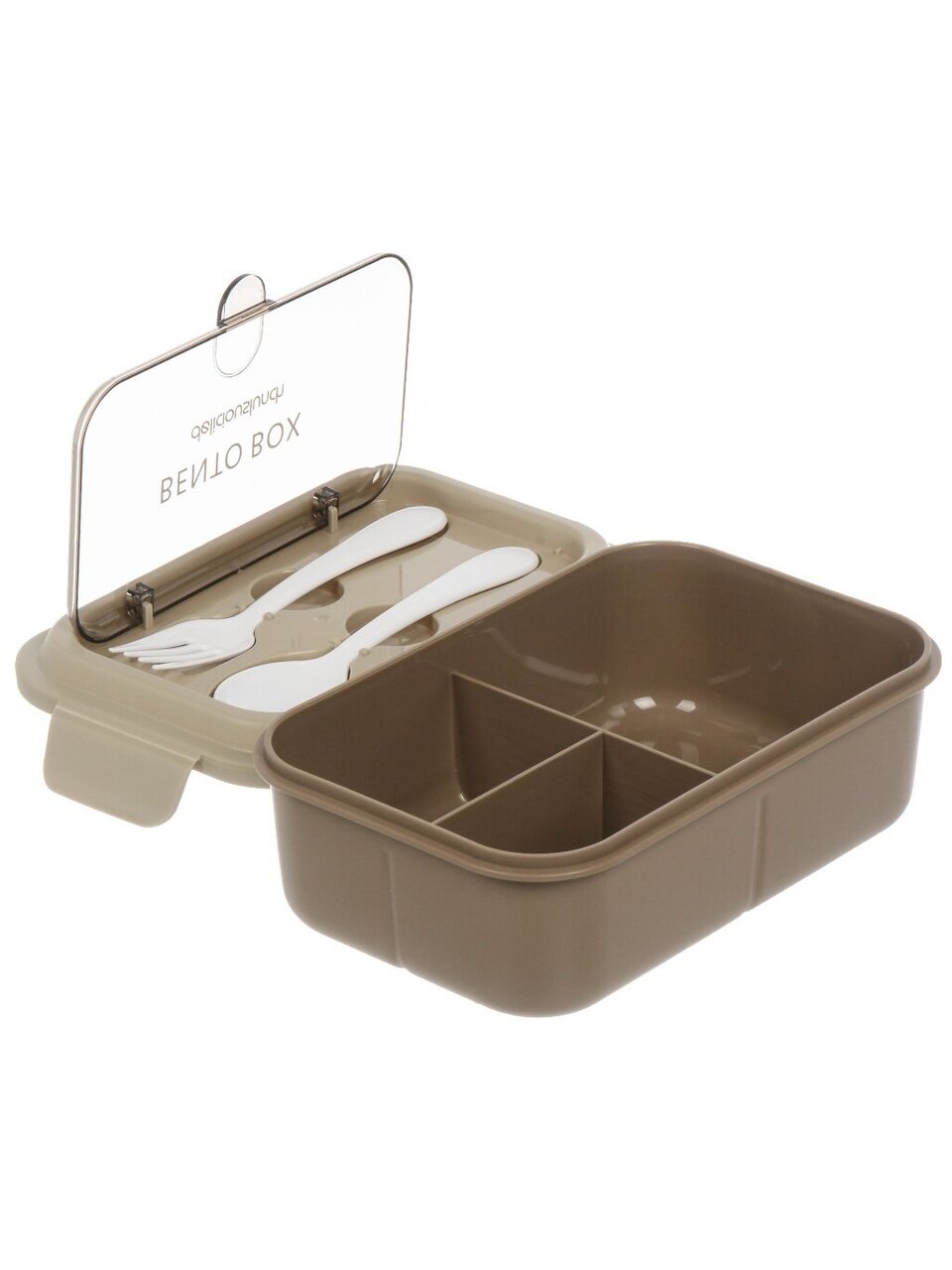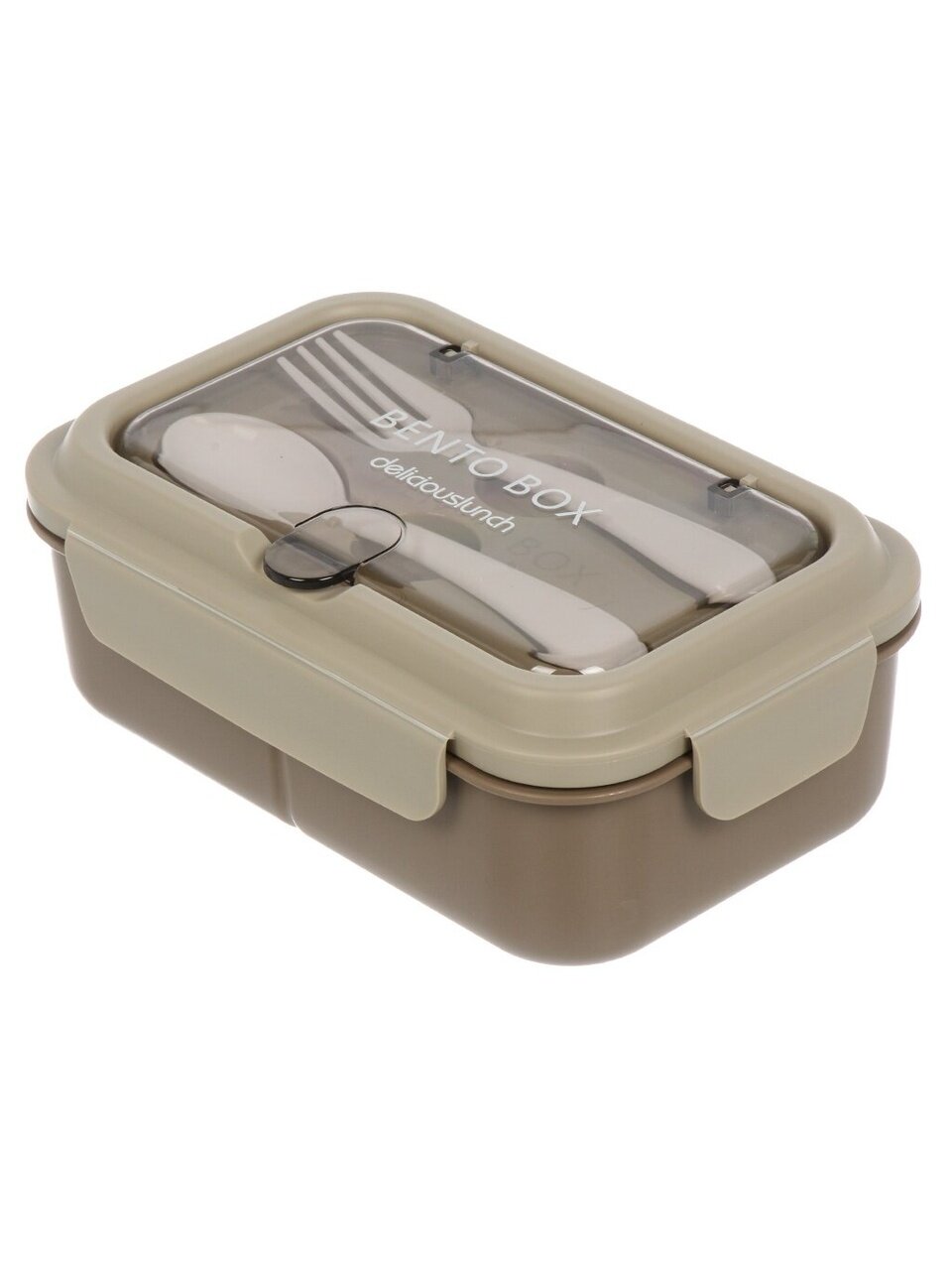 Удобный контейнер-ланчбокс 19,2×13,5×7,2 см с приборами и отсеками: храните и берите обед с собой без утечек и лишних хлопот.