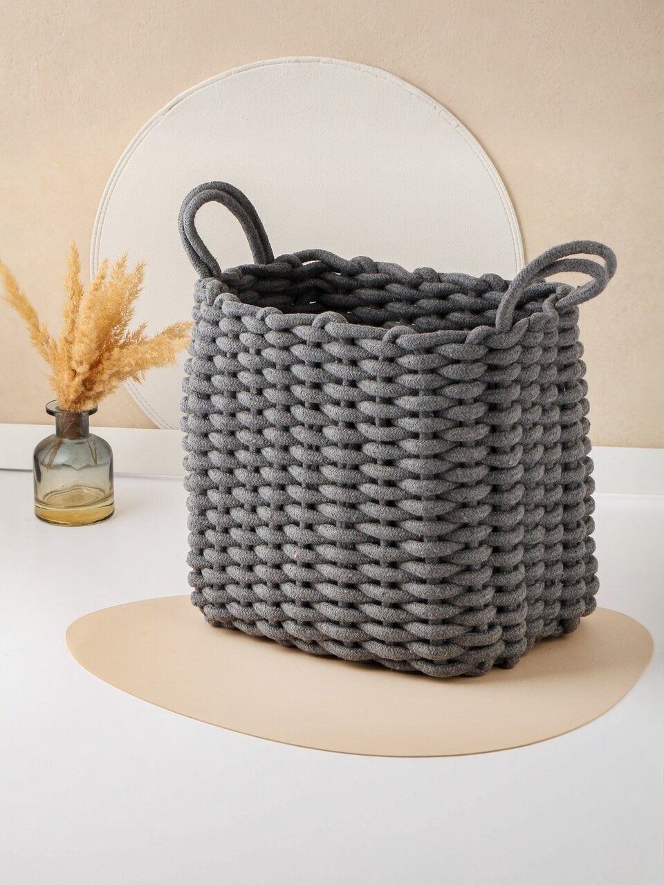 - стильный и современный дизайн: серый цвет и плетеная структура делают корзину эстетически привлекательной, подходящей для любого интерьера;