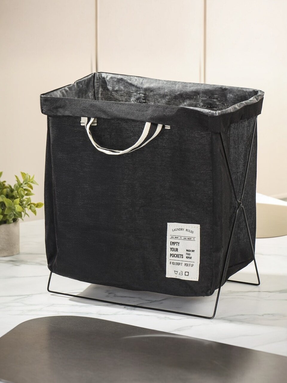 - стильный и универсальный дизайн: черный цвет и прямоугольная форма позволяют корзине гармонично вписаться в любой интерьер, добавляя нотку современности и строгости;
