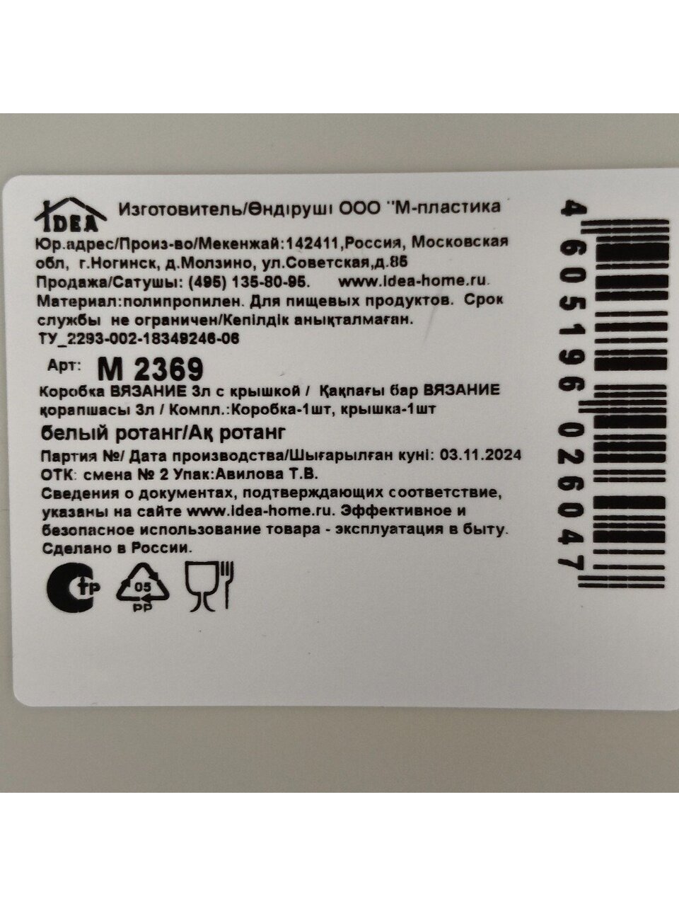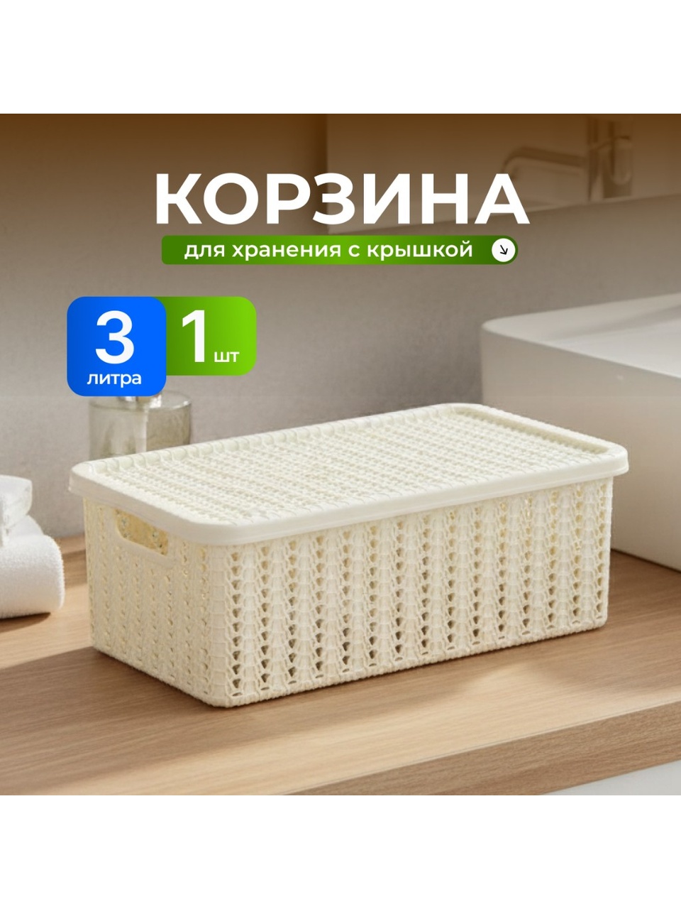 Вы можете приобрести «Корзина для хранения, 3 л, прямоугольная, плетеная, пластик, белый ротанг, с крышкой, Idea, Вязание, М2369» и другие товары в нашем интернет-магазине в Смоленске по низким ценам и с бесплатным самовывозом.
