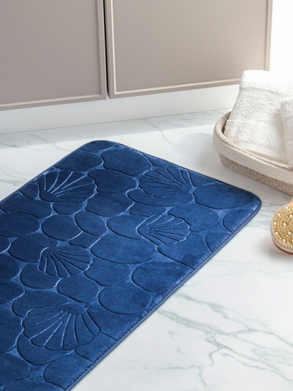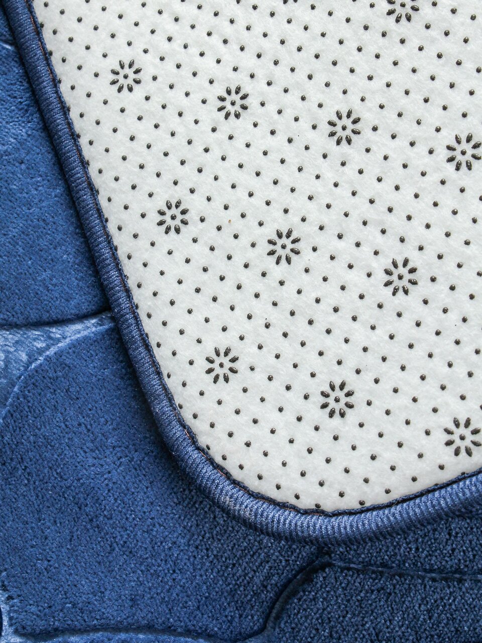 Практичный коврик для ванной 50х80 см с синим узором «галька»: быстро впитывает влагу, легко стирается, удобен для дома и дачи — доступная цена.