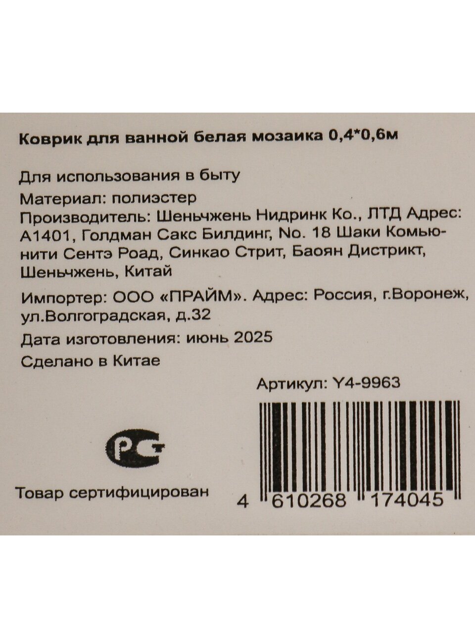 Коврик для ванной из диатомита 40х60 см с сине-белой мозаикой Y4-9963 — быстро впитывает влагу, не скользит, идеально для дома и дачи по доступной цене.