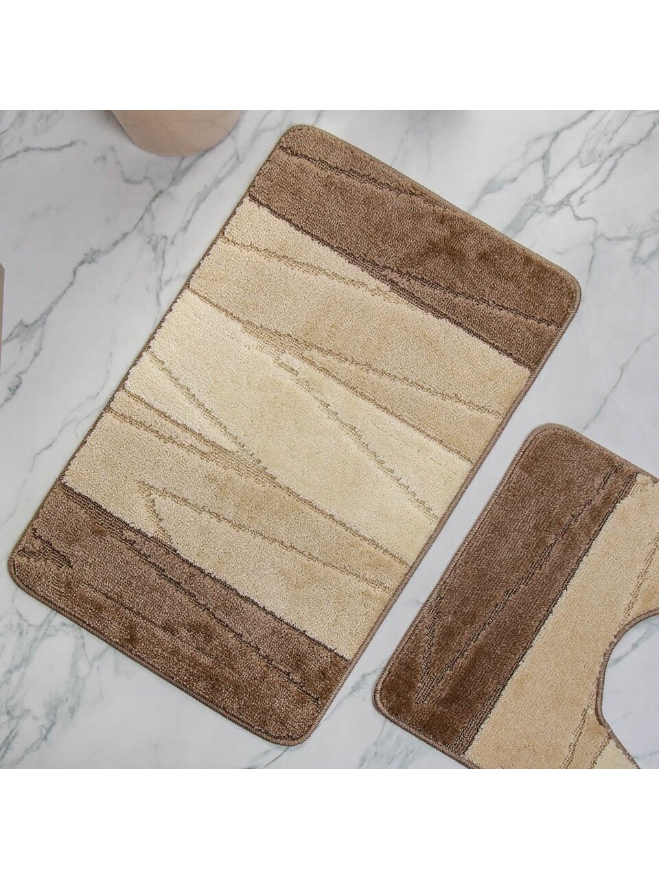 Двухкомпонентный комплект ковриков для ванной Aqua-Prime Enigma: идеальный баланс комфорта, безопасности и стиля для вашей ванной комнаты — премиальный латекс, актуальный кремовый оттенок, размеры 50х80 и 40х50 см.