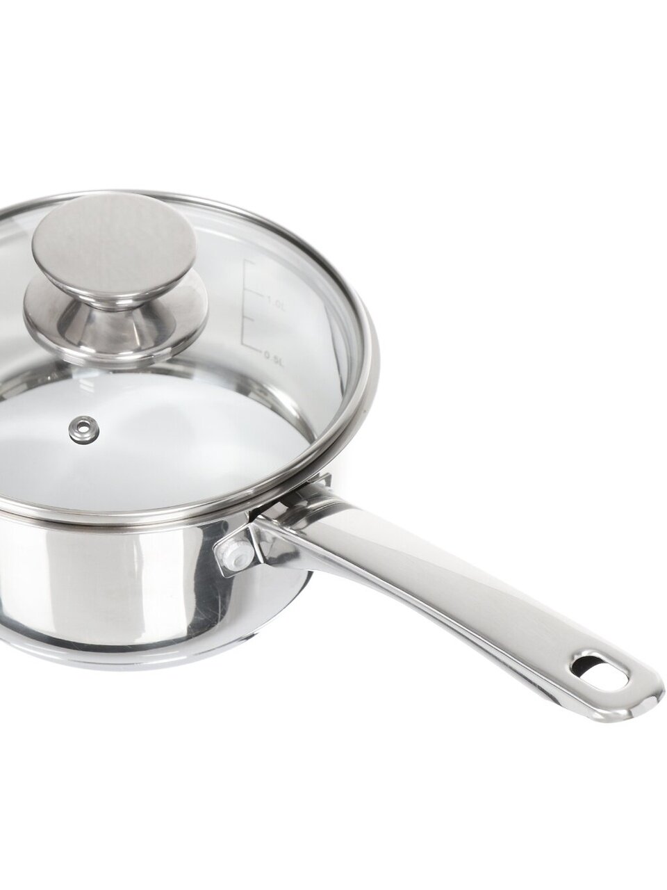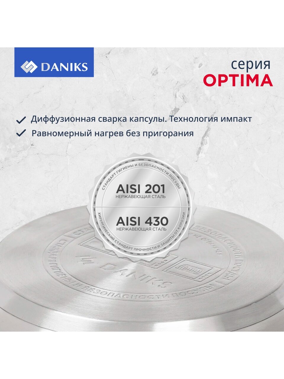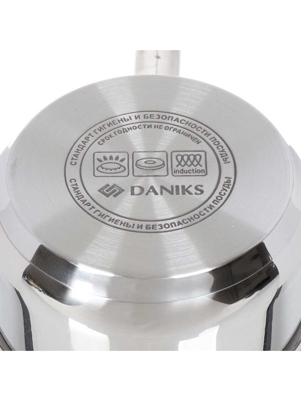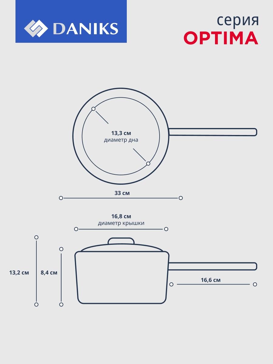Ковшик посуды Daniks Оптима выполнен из высококачественной нержавеющей стали. Крышка из прозрачного стекла позволяют контролировать процесс приготовления пищи. Металлическая ручка прикреплена к корпусу методом клепочной фиксации, удобна, прочна и не нагревается при использовании посуды.
