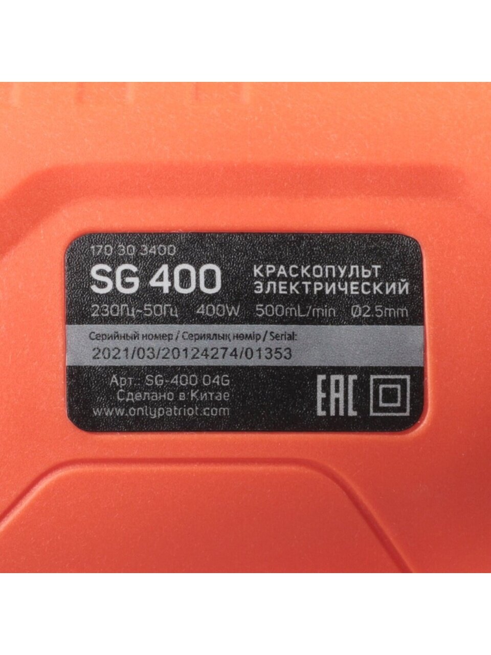 Вы можете приобрести «Краскопульт электрический, Patriot, SG 400, 0.4 кВт, 0.5 л/мин, 0.8 л, 50 DIN/сек, с нижним бачком, 2.5 мм, 170303400» и другие товары в нашем интернет-магазине в Иваново по низким ценам и с бесплатным самовывозом.