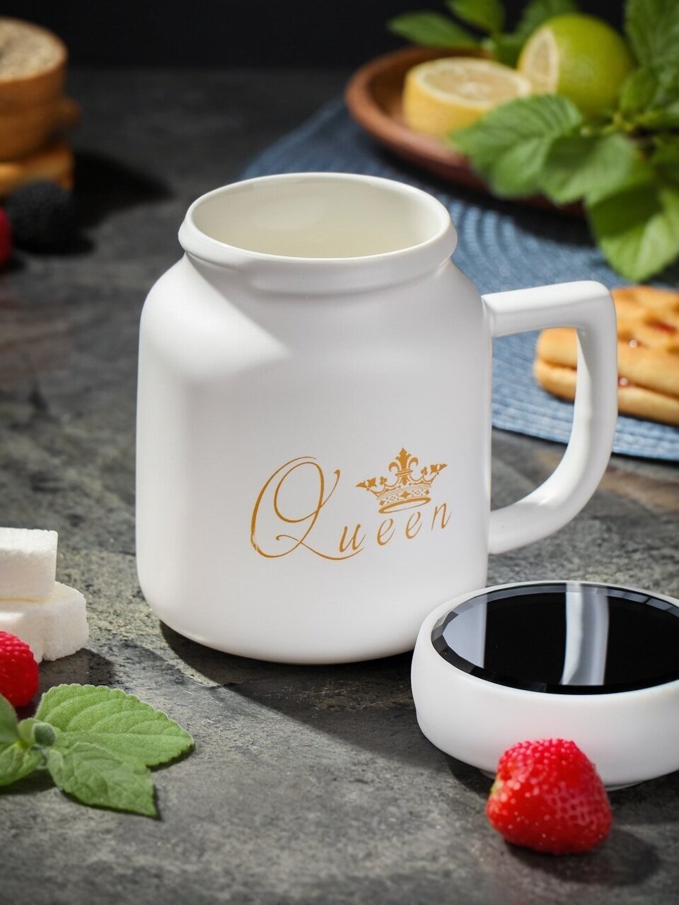 Керамическая кружка «Королева» 450 мл с крышкой — стильный подарок в упаковке для дома или офиса. Удобно брать с собой, подходит для посудомоечной машины и СВЧ.
