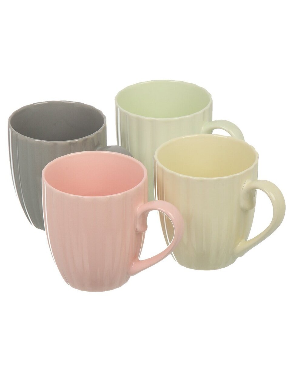 Объем каждой кружки — 380 мл (округлённо 400 мл), высота 105 мм, диаметр 85 мм. В наборе 4 разноцветные кружки.