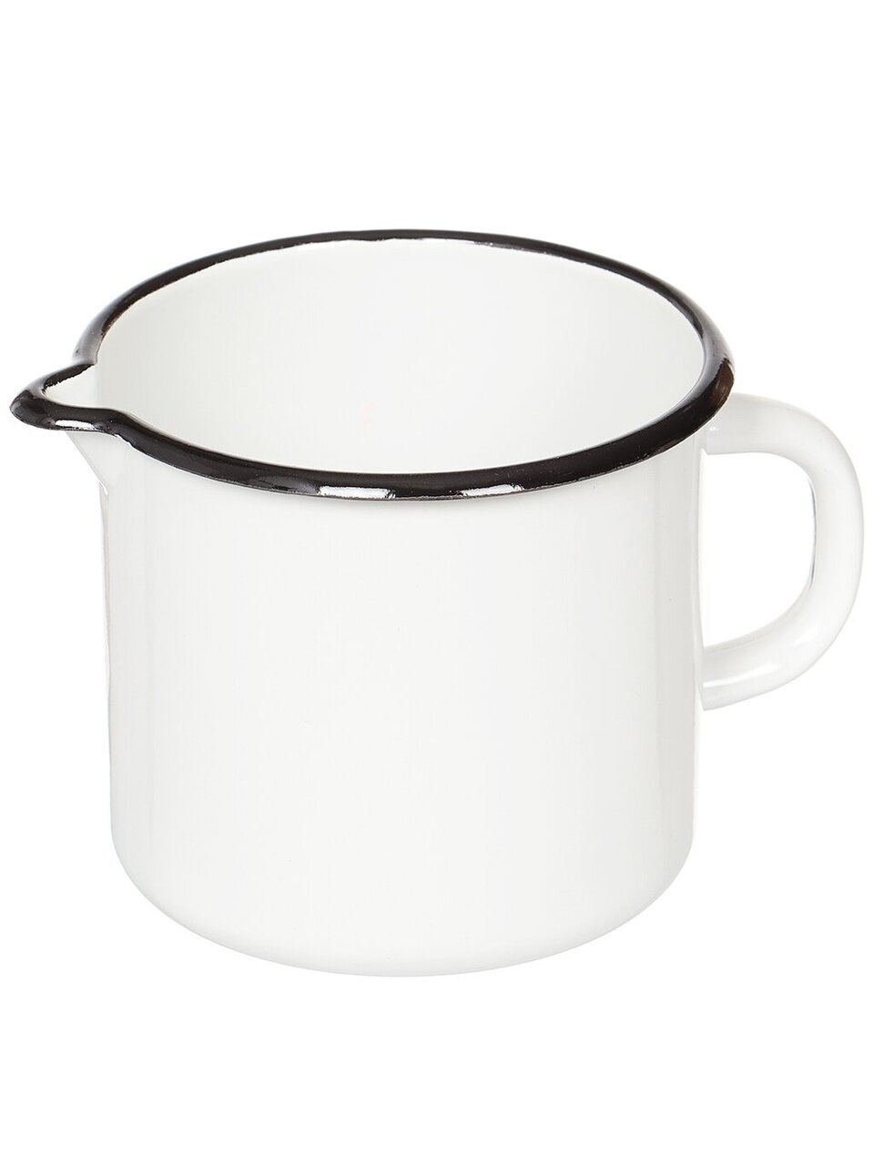 Эмаль защищает от коррозии, не впитывает запахи, легко моется, кружка выдерживает перепады температур и подходит для разлива напитков благодаря носику.