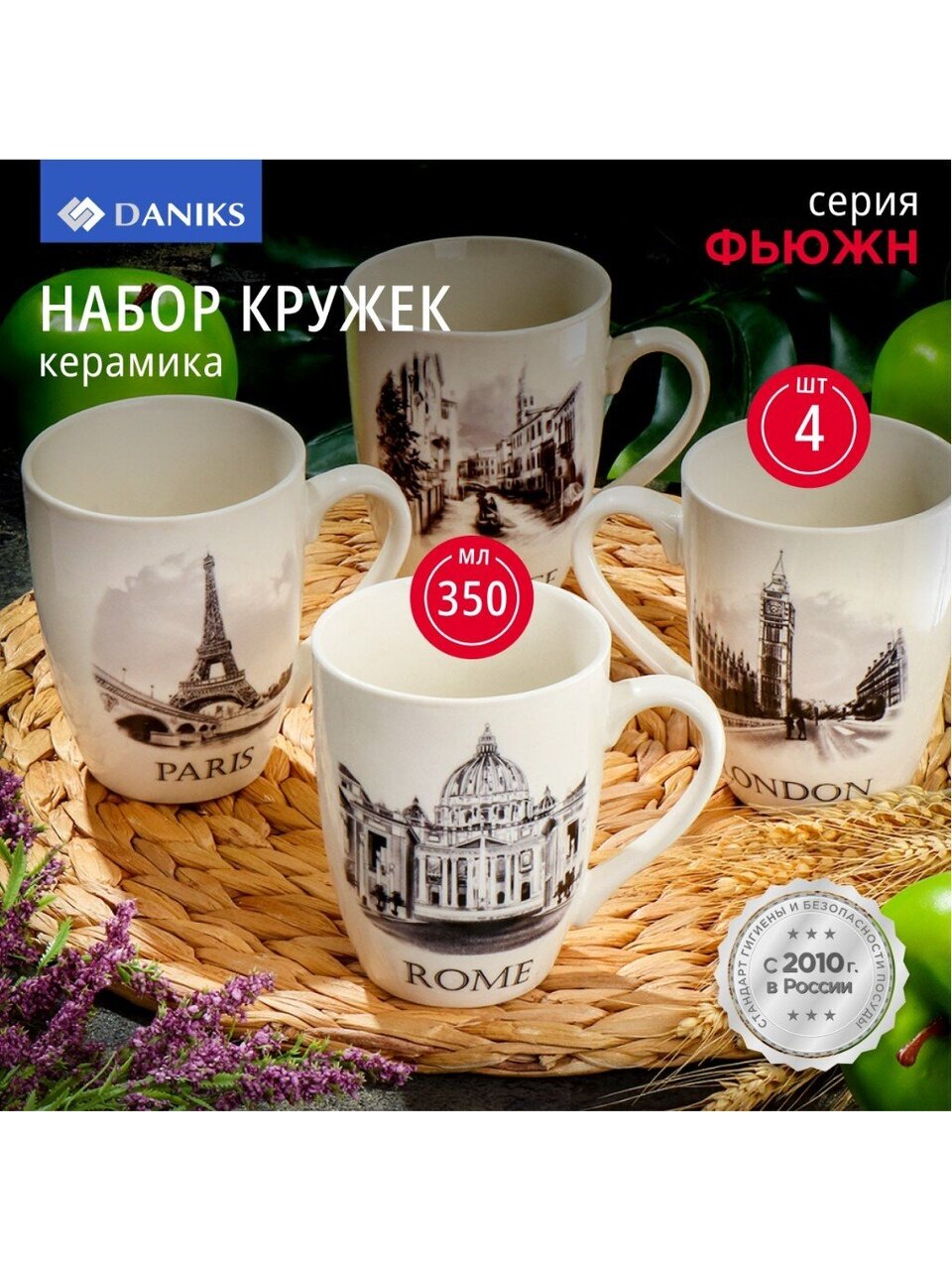 Как выбрать кружку для дома или в подарок? Набор керамических кружек Daniks Фьюжн — это современное сочетание стиля и функциональности. Объем 350 мл оптимален для чая, кофе или какао, а универсальный белый цвет с модными городскими мотивами впишется в любой интерьер. Керамика не впитывает запахи, устойчива к перепадам температур и подходит для использования в микроволновке — это важно для повседневного комфорта.